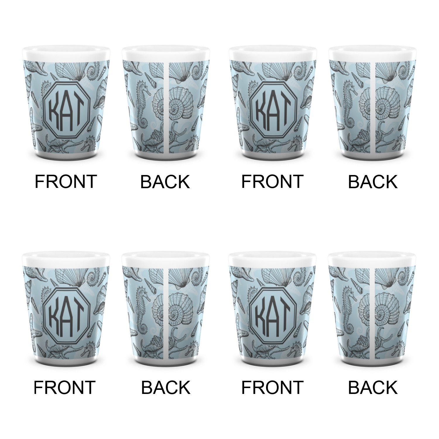 Coastal / Beach Style Designs for Ceramic Shot Glasses - 1.5 oz - White - Set of 4