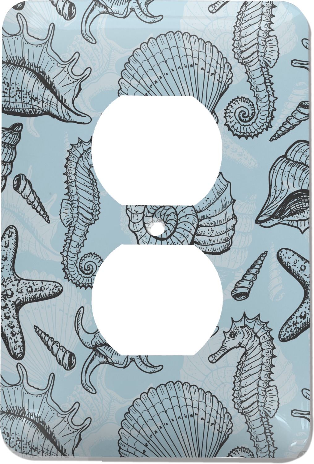 These outlet covers are made from a sturdy metal and display your design across its face. A satin finish coats the design to give it a finished look. The center of this outlet plate cover has a small hole to accommodate a screw upon installation. With your purchase of this decorative outlet cover, we include one screw. This outlet plate is of a standard size, and measures at approximately 3.5 by 5 inches.