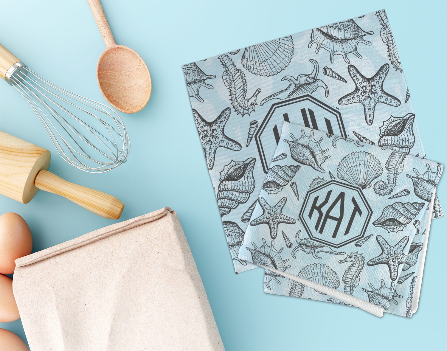 This seashells is perfect for your real or dream beach house. It features a conch shell (so you can always hear the ocean), clam shell, sea horse, and starfish, all on a sweet baby-blue background. You won't even have to be at your beach house to feel the sand between your toes.