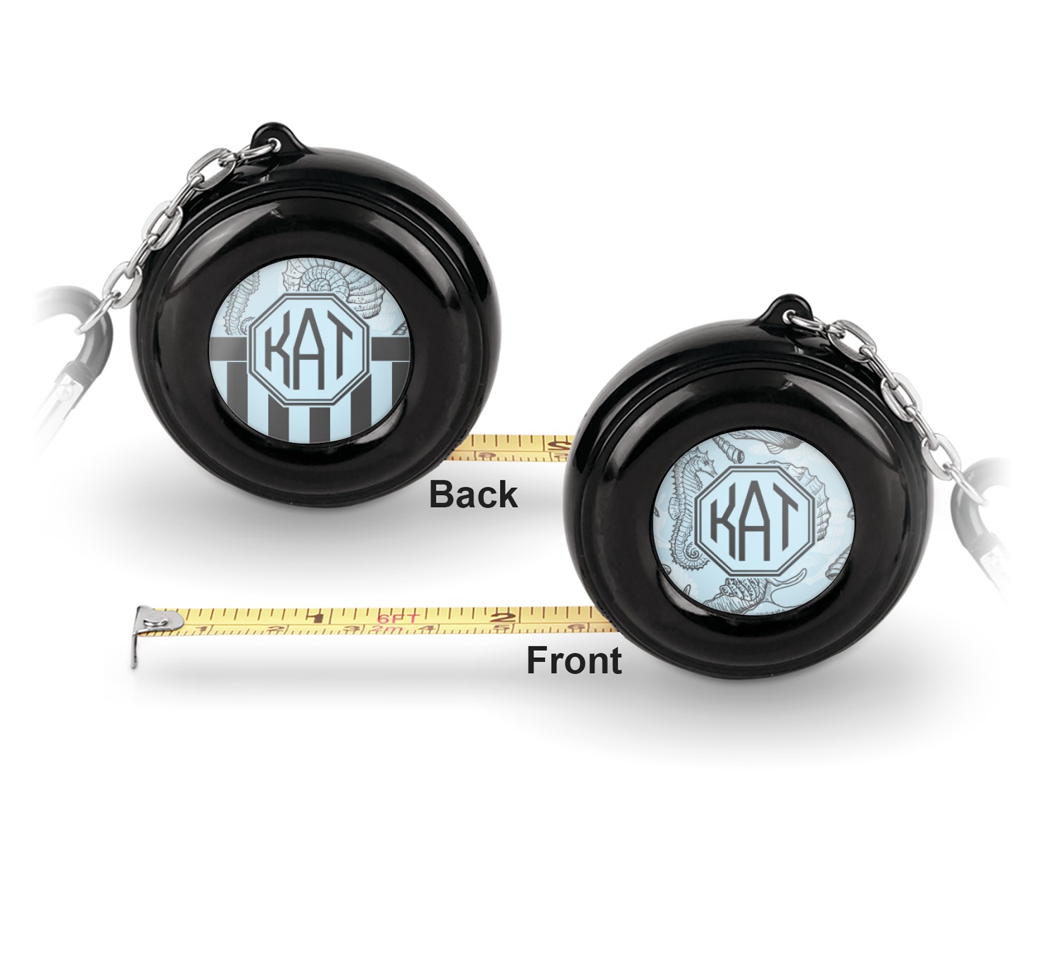 Now for personalizing! You get to personalize both sides of your tape measure. Have fun picking a cute pattern, font, or graphic! Make your personality shine through this fun tool.