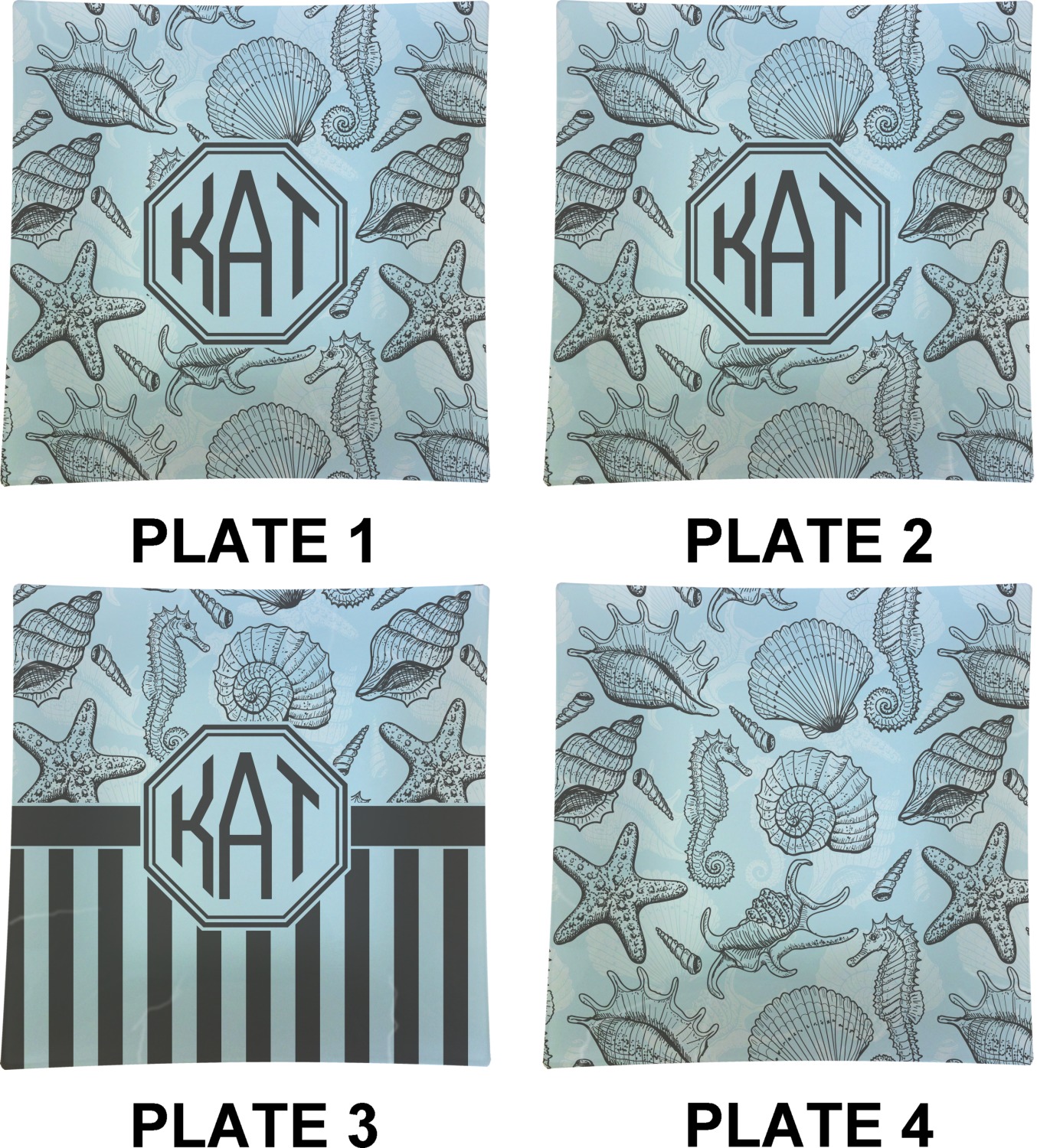 Coastal / Beach Style Designs for Glass Square Lunch / Dinner Plates 9.5" - Set of 4