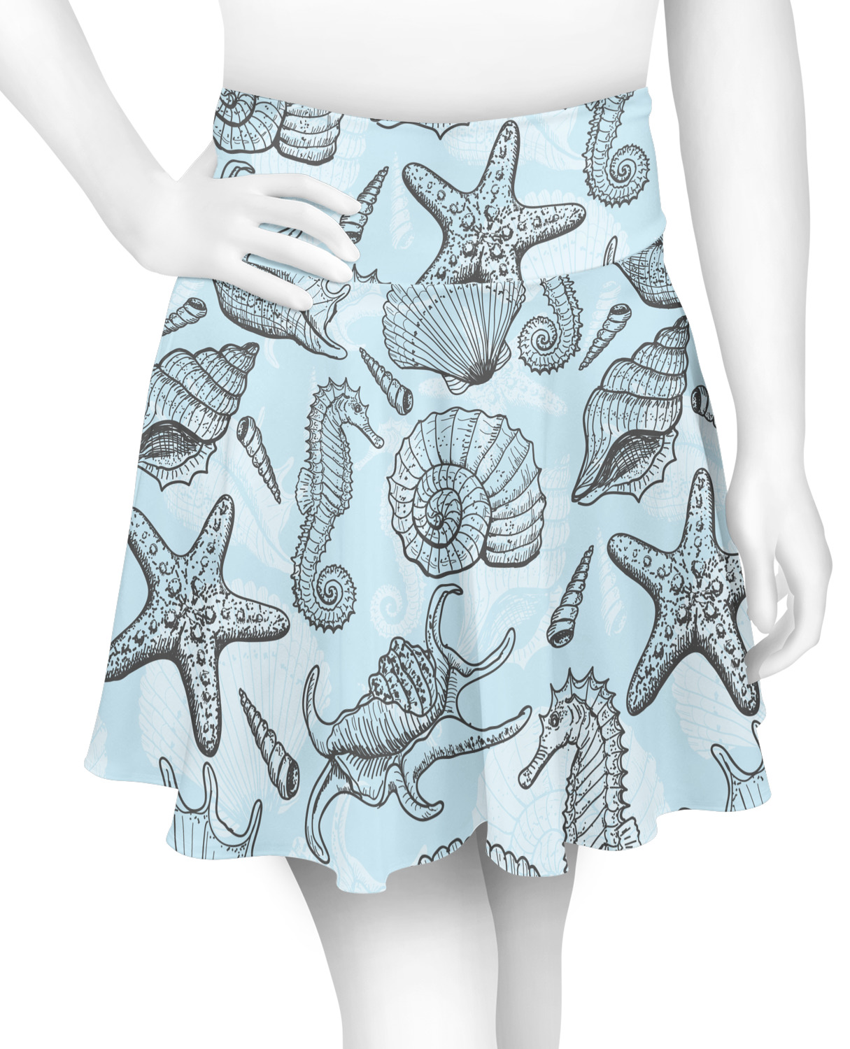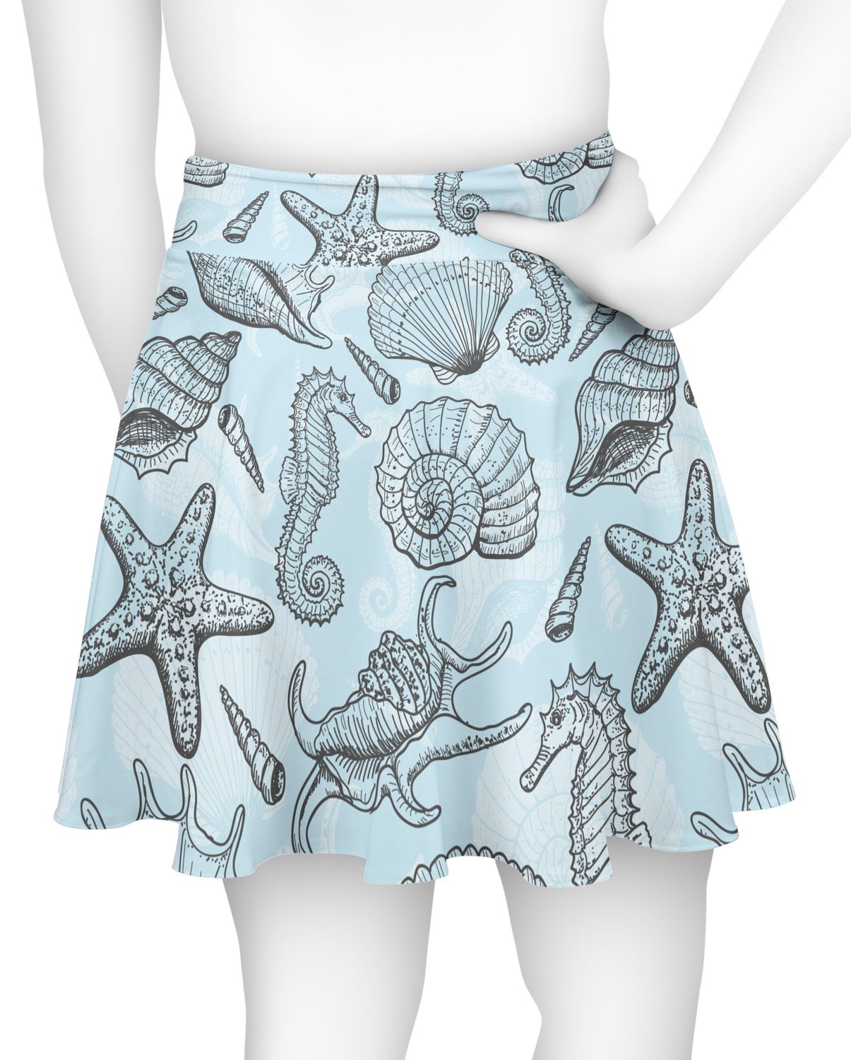 This skirt is a fun skater style that flares out (especially if you take a twirl in it!). The waist band is about 4" thick to wear as a high wasted skirt, but can easily be folded down to become a low waisted skirt. The band hugs you tight while the rest of the skirt is very flowy. The material is a comfortable, casual material that has a very slight sheen to it. It comes in 6 different sizes ranging from XS to 2XL. This skirt is perfect as a casual skirt, but can be easily dressed up to be a more formal skirt.