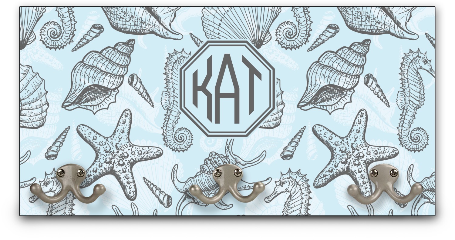 This coat rack is the perfect way to add some personality to your wall or entryway. The board is made of a strong maple that is approximately 16" x 8". The three 2-prong hooks are a sturdy metal that have three screws attaching them to the board. Your design is printed right onto the front of the board while the back and sides are a simple black.
