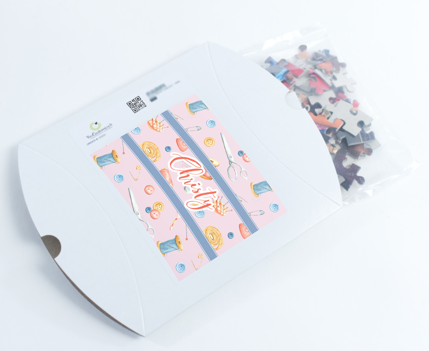 Depending on the look you are trying to achieve, you can add; a thematic pattern or background, with a photo in a frame and text or personalization to your puzzle. Basically if you can imagine it, you can design it!