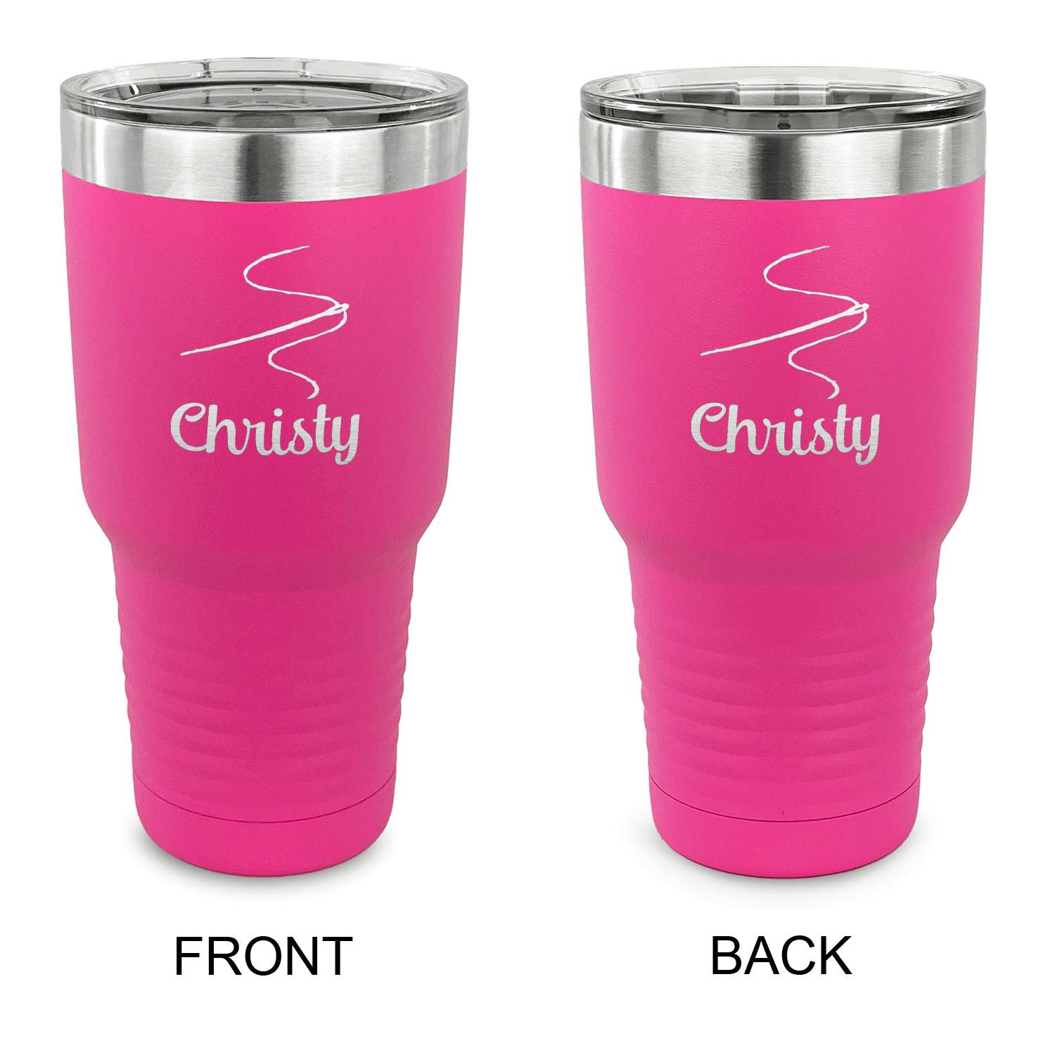 With the 5 colors - Black, Navy, Red, Pink and Coral, you are sure to find a cup to fit your personality. You can chose to engrave on the front or the front and back of the cup. Use our design studio to design your own cup and we laser engrave it for you.