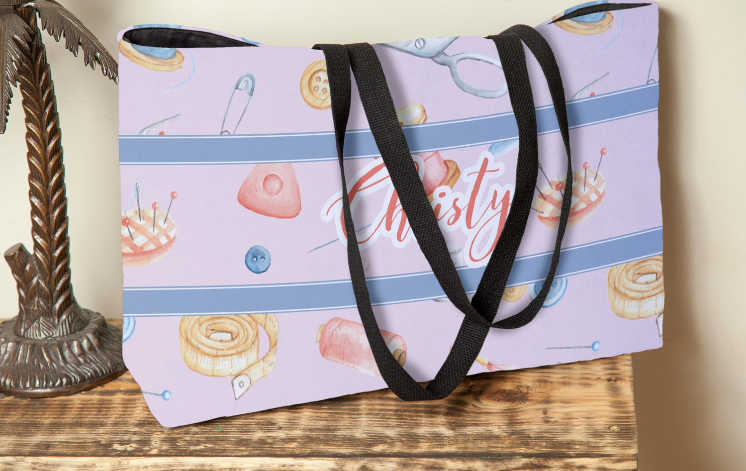 If you are a seamstress or just love sewing as a hobby, this design is for you! Help spruce up your sewing room with some accessories with this fun sewing pattern on it!