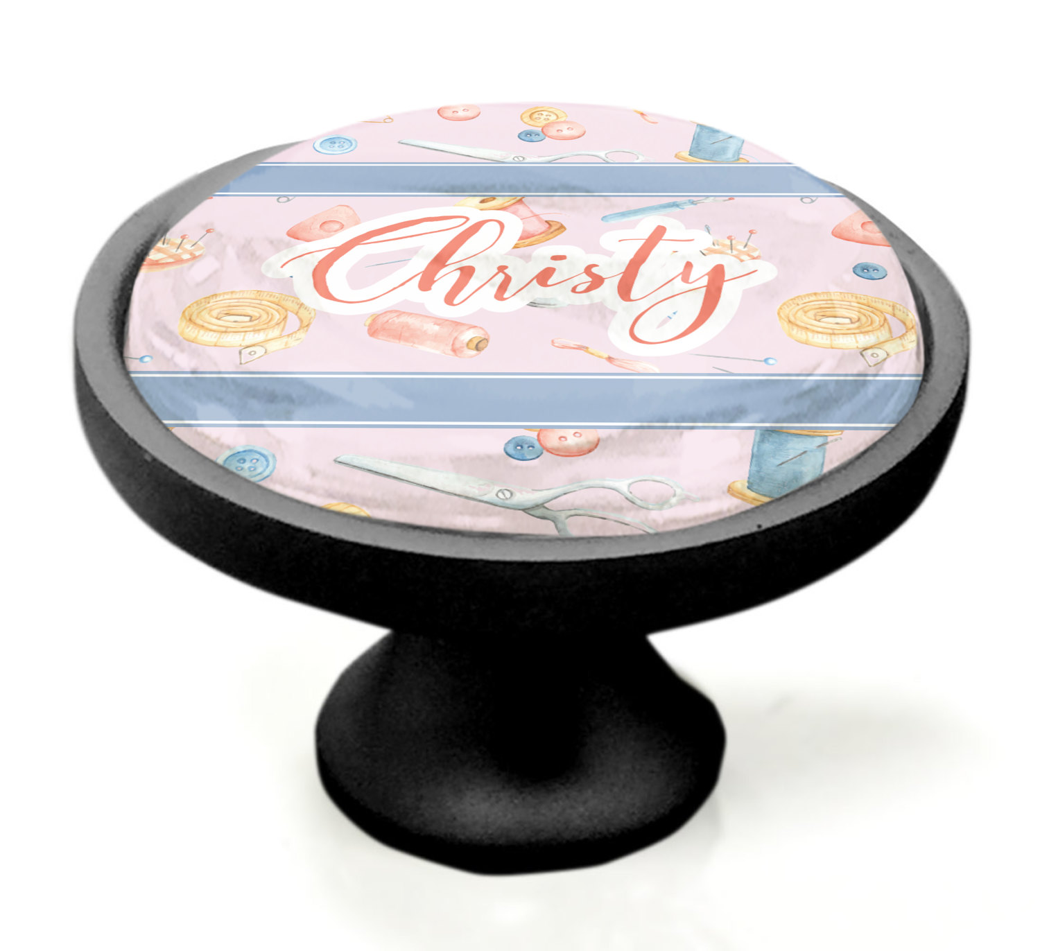 If you are a seamstress or just love sewing as a hobby, this design is for you! Help spruce up your sewing room with some accessories with this fun sewing pattern on it!
