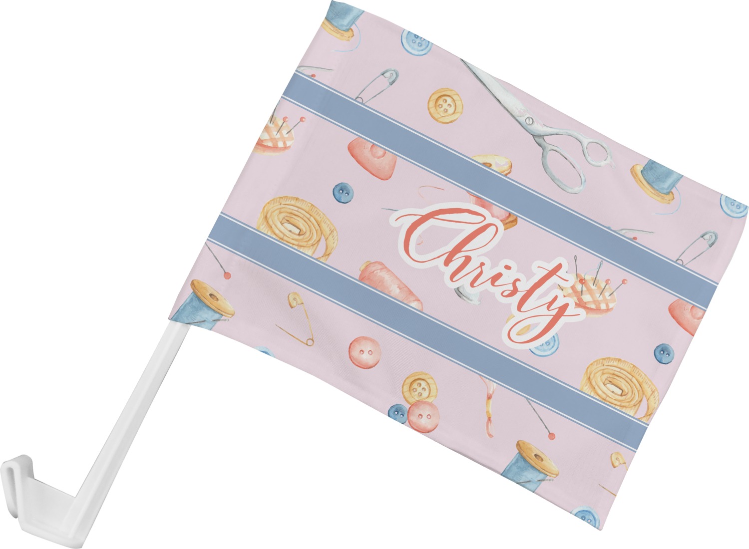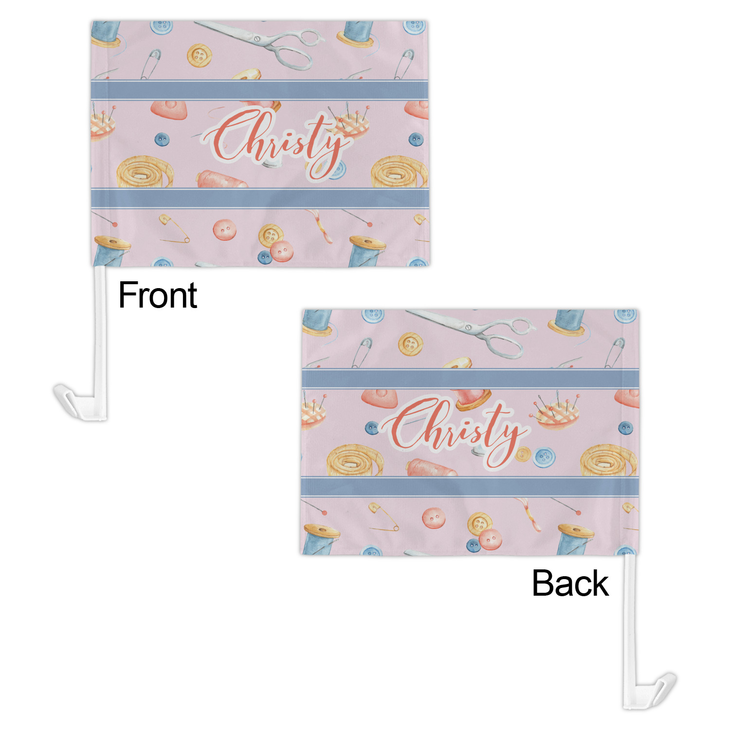 Our personalized flags are made from a durable, yet lightweight cloth that will proudly bear your logo or design of choice, while withstanding the outside elements. We have two size options - 8" x 11" and 11" x 15". Both come with a flag pole which includes a clip that secures the pole to the side window, whether it is rolled up or down. The flags are printed on both sides to display your design from all directions.