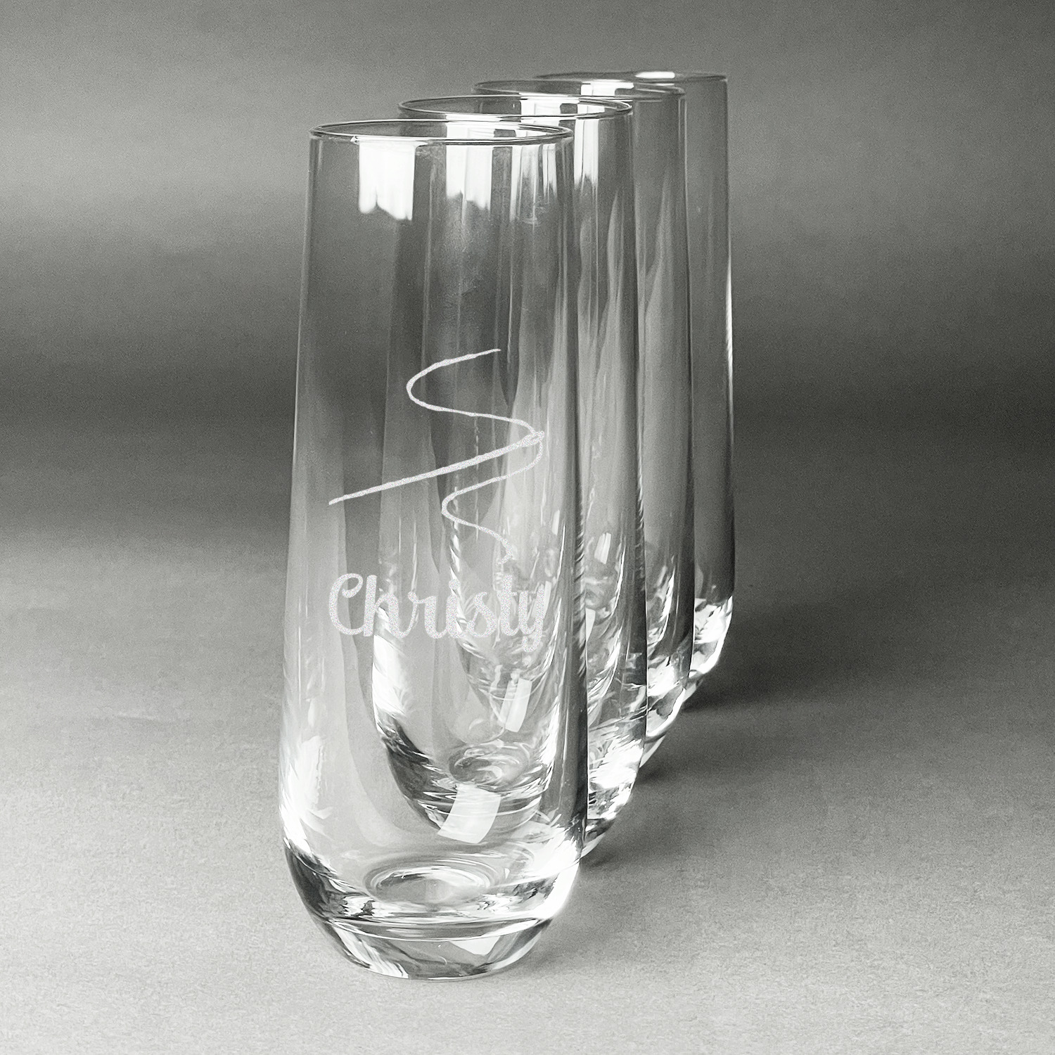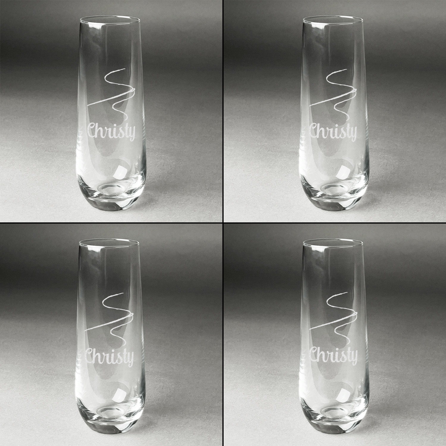 Design your custom stemless champagne flutes and we will then laser engrave your unique design on them for you. Whether they are a special gift for a bride and groom, for your New Years Eve party, or a bachelorette party you are sure to be able to add a custom personalized touch to make them perfect for the occasion.