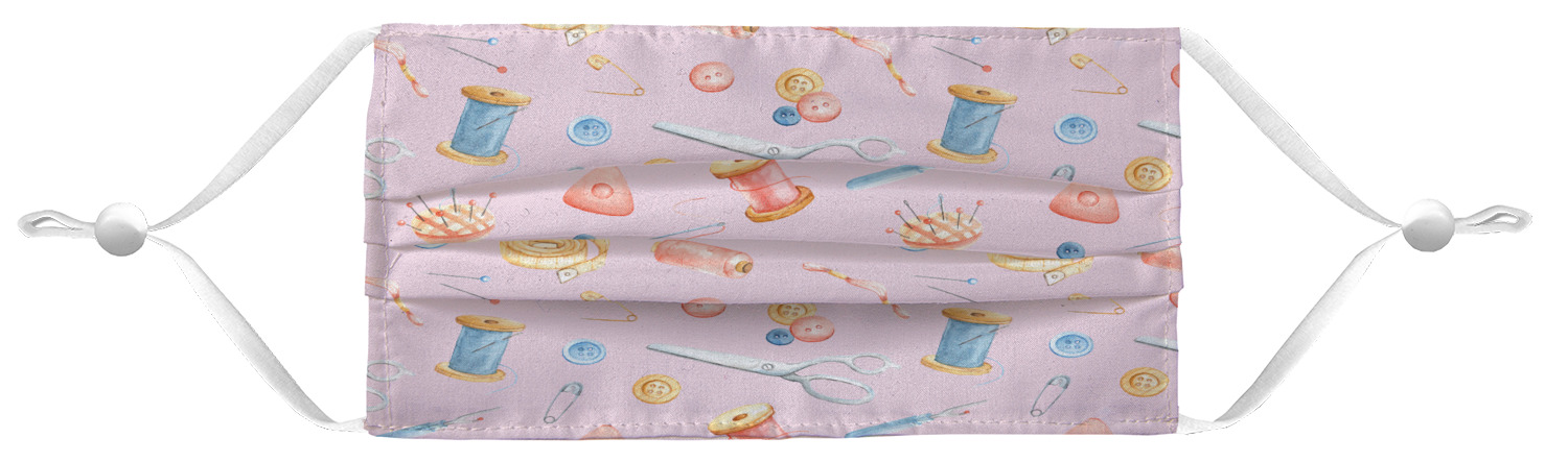 These fun face masks are 7" wide and 3.5" high. They feature pleats, adjustable ear loops, and are made with two layers of fabric. The top layer where your design is printed is a breathable polyester sheeting, while the inside layer is a soft microfiber polyester