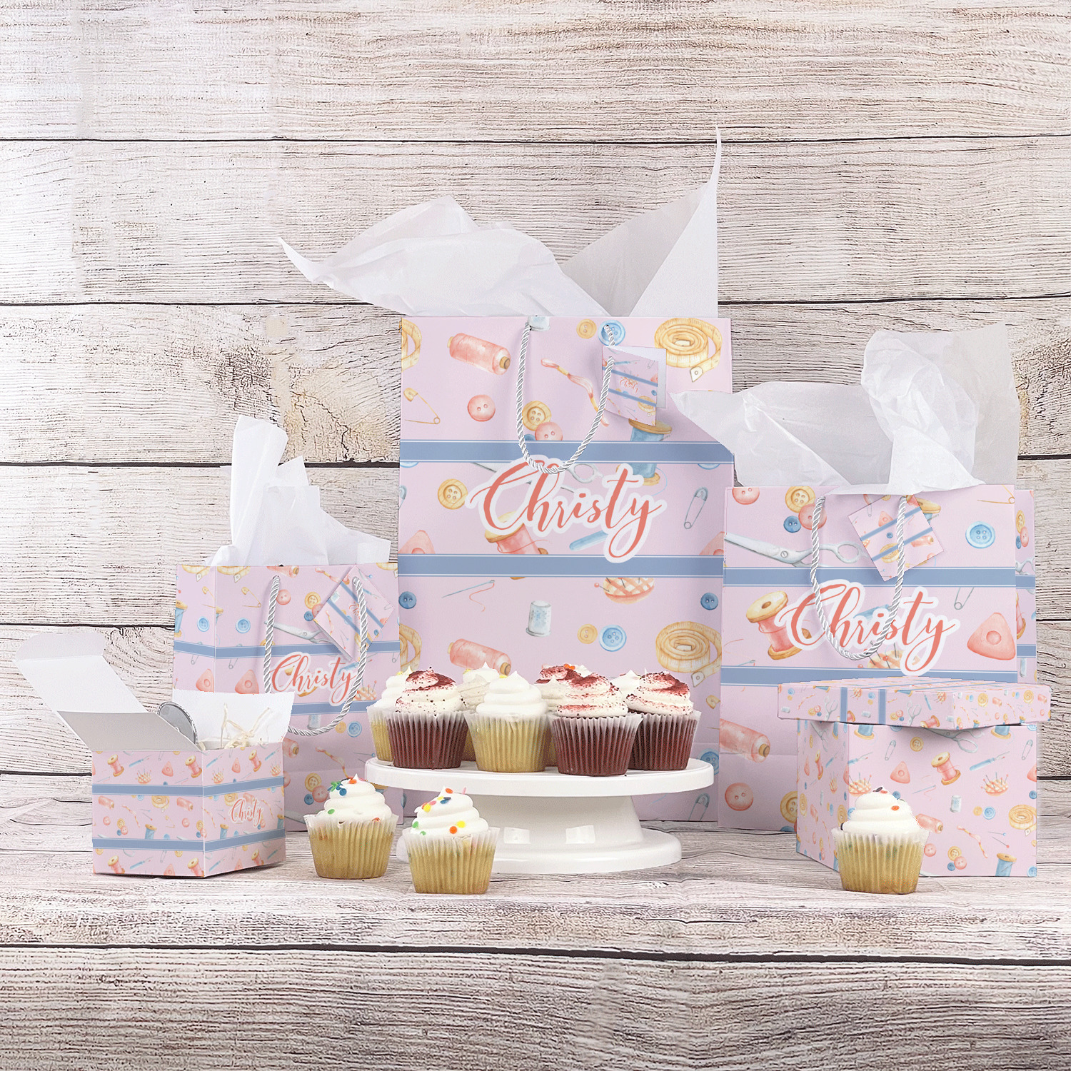 | Size (Varies By Option) | Small Gift Bag (7" x 4" x 9") Medium Gift Bag (10" x 5.25" x 12") Large Gift Bag (12" x 5.5" x 18") |
