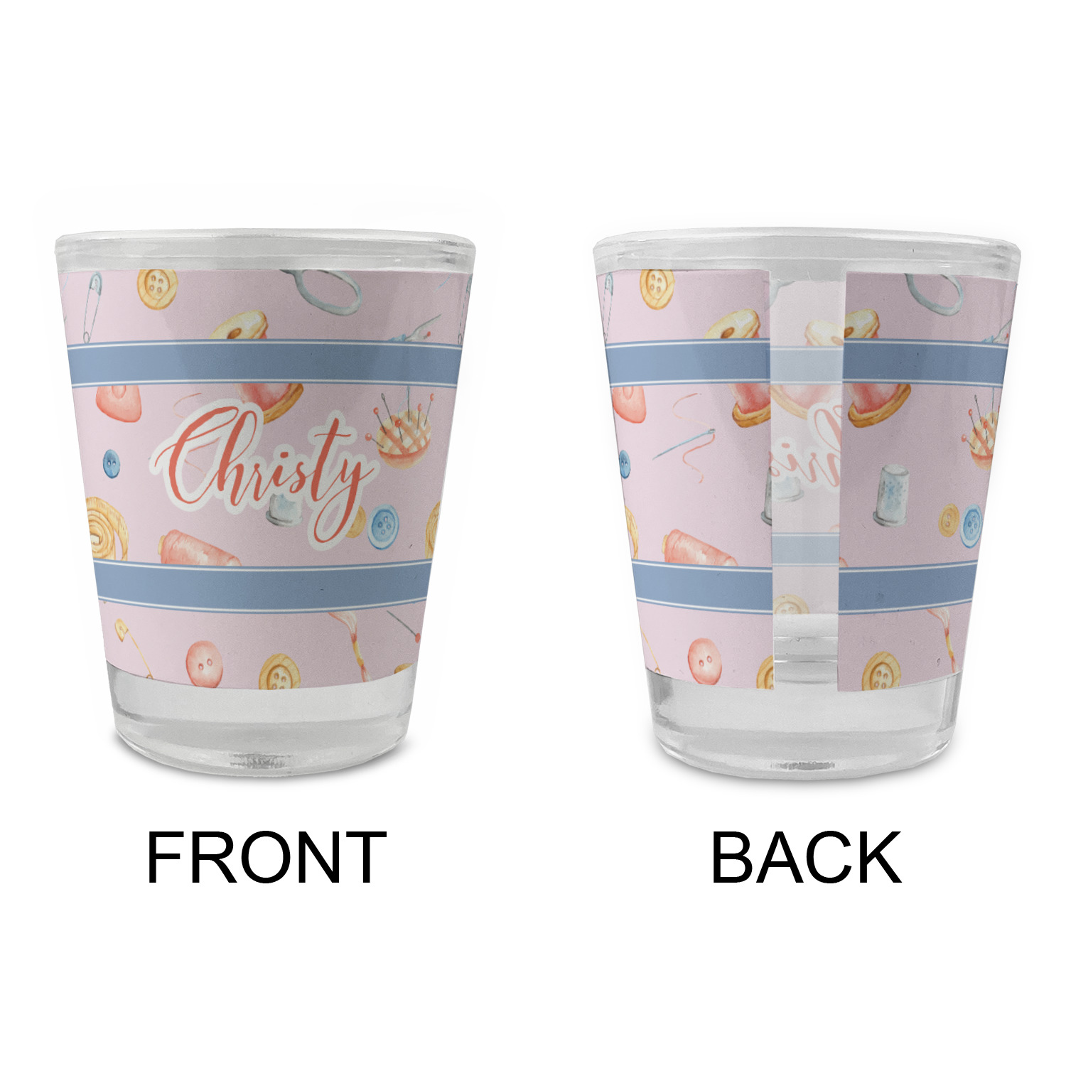 Made with frosted glass, these shot glasses are printed in full color with the design of your choice. They are a standard 1.5oz shot glass and are 2.4" tall. The print is wrapped around the shot glass in a full wrap and boldly displays your customization.