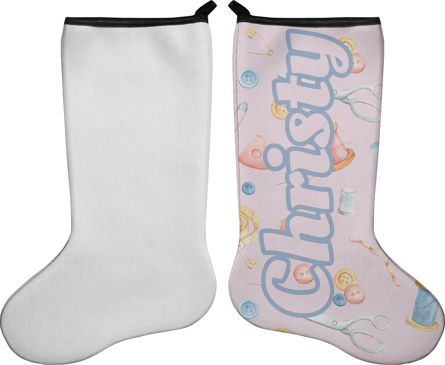 These 17" x 11" stockings are made of neoprene and have a black trim to give them a fantastic finished look. Your very own design is printed right onto the stocking, either single sided with white on the back or double sided where can use the same or different designs / patterns on the front and the back - the choice is yours. At the top of the stocking is a 2" loop for hanging.