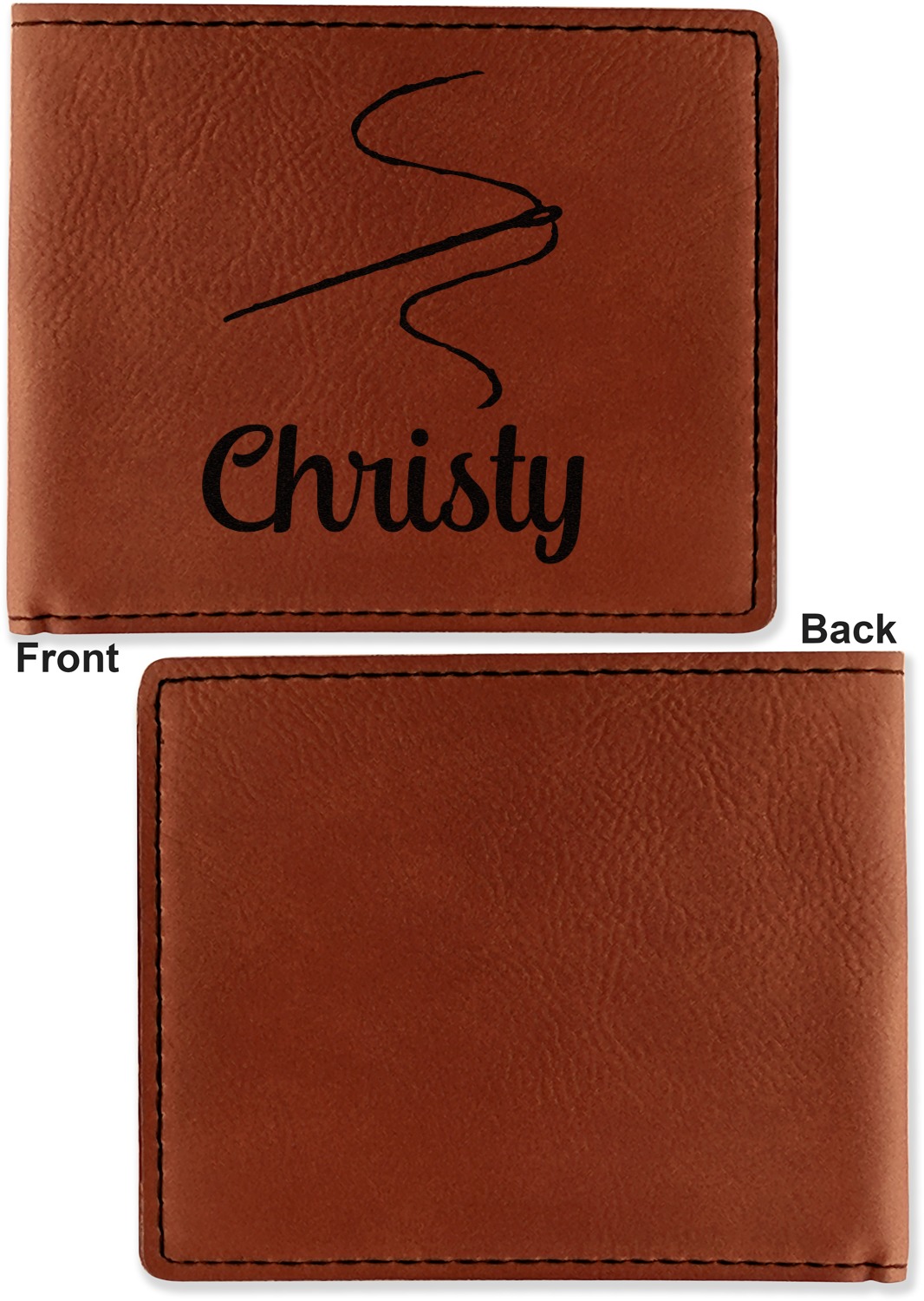 Your bifold wallet will be personalized by laser engraving, which will be a black color on the wallet. Choose a graphic, text, or monogram to personalize your wallet. There are thousands of choices in our design center.