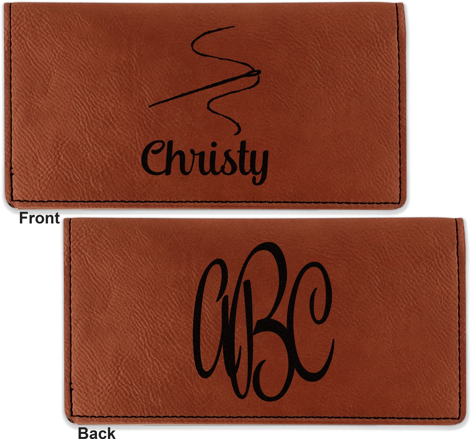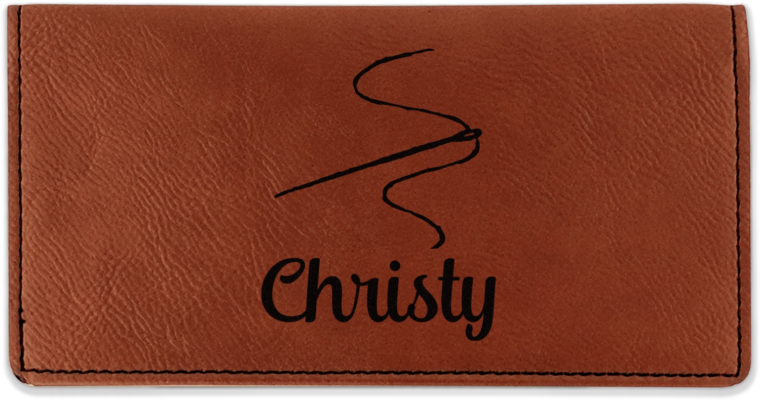 Go into our design center to start personalizing. Your checkbook cover will be laser engraved, making the graphic or text a black color. Choose a fun saying, monogram, or font to go on your checkbook cover. You have the opportunity to do it double or single sided.