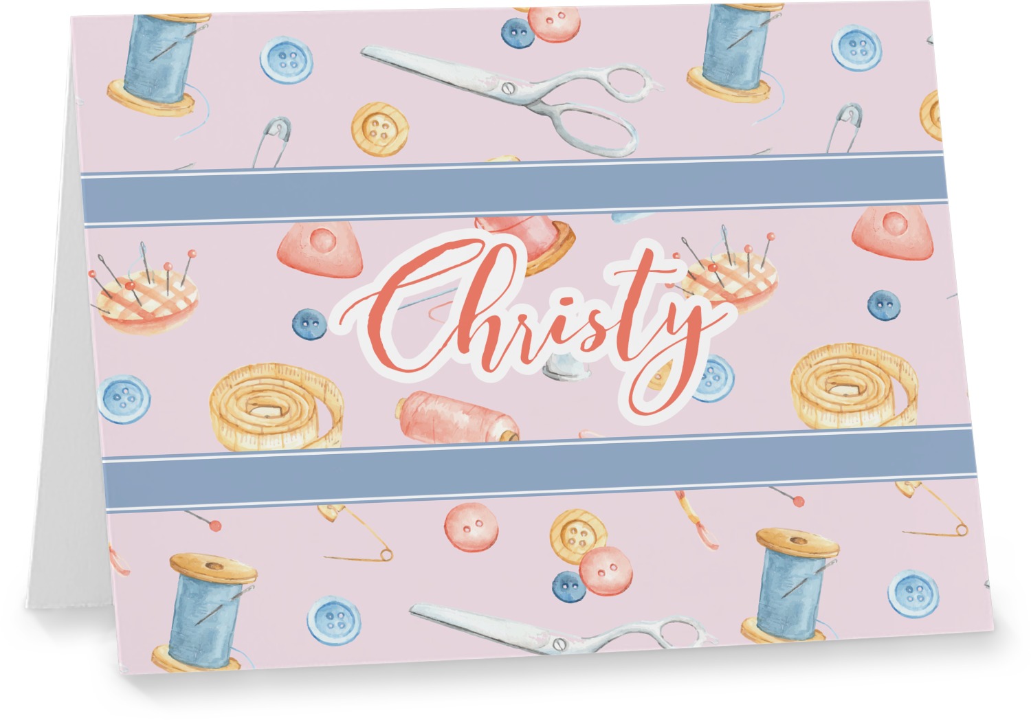 Our custom folded note cards are printed on premium 100lb. card stock and comes with white envelopes. The note card measure 5.5 by 4.25 inches and are blank on the inside for your handwritten message.