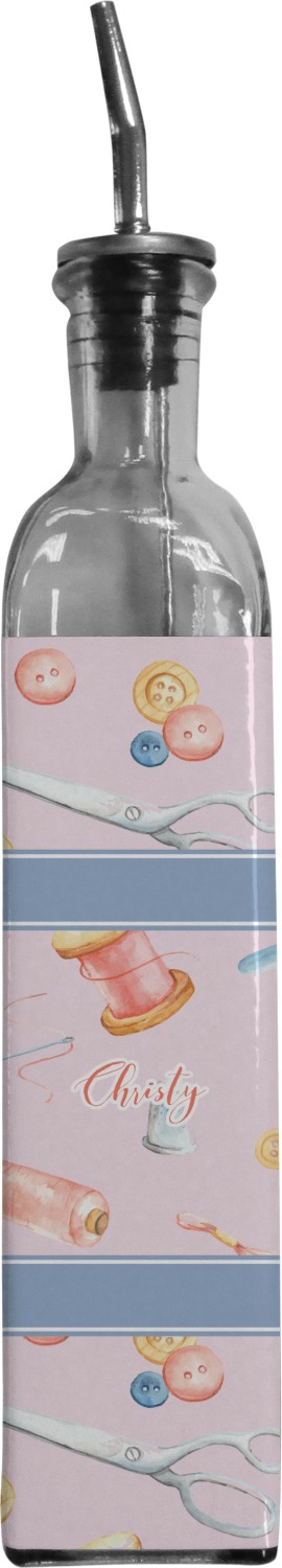 Made from recycled glass in Spain, these oil bottles have a classic, delicate look, and are accompanied by a metal spout for controlled pouring. Each bottle holds approximately 13 ounces and measures at 12 by 2 inches. We customize your glass oil bottle by applying your personalized design on the front and sides, using an adhesive. Our customizable stickers are made from high quality, gloss vinyl and are printed with waterproof, eco-solvent inks. These pieces are machine cut for accuracy and symmetry. The result is a robust, waterproof, adhesive decal that will not fade or deteriorate with time.