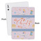 The customization / personalization is printed on the back side. The playing cards have a low gloss coating on both sides. The cards are packaged in a clear plastic box.
