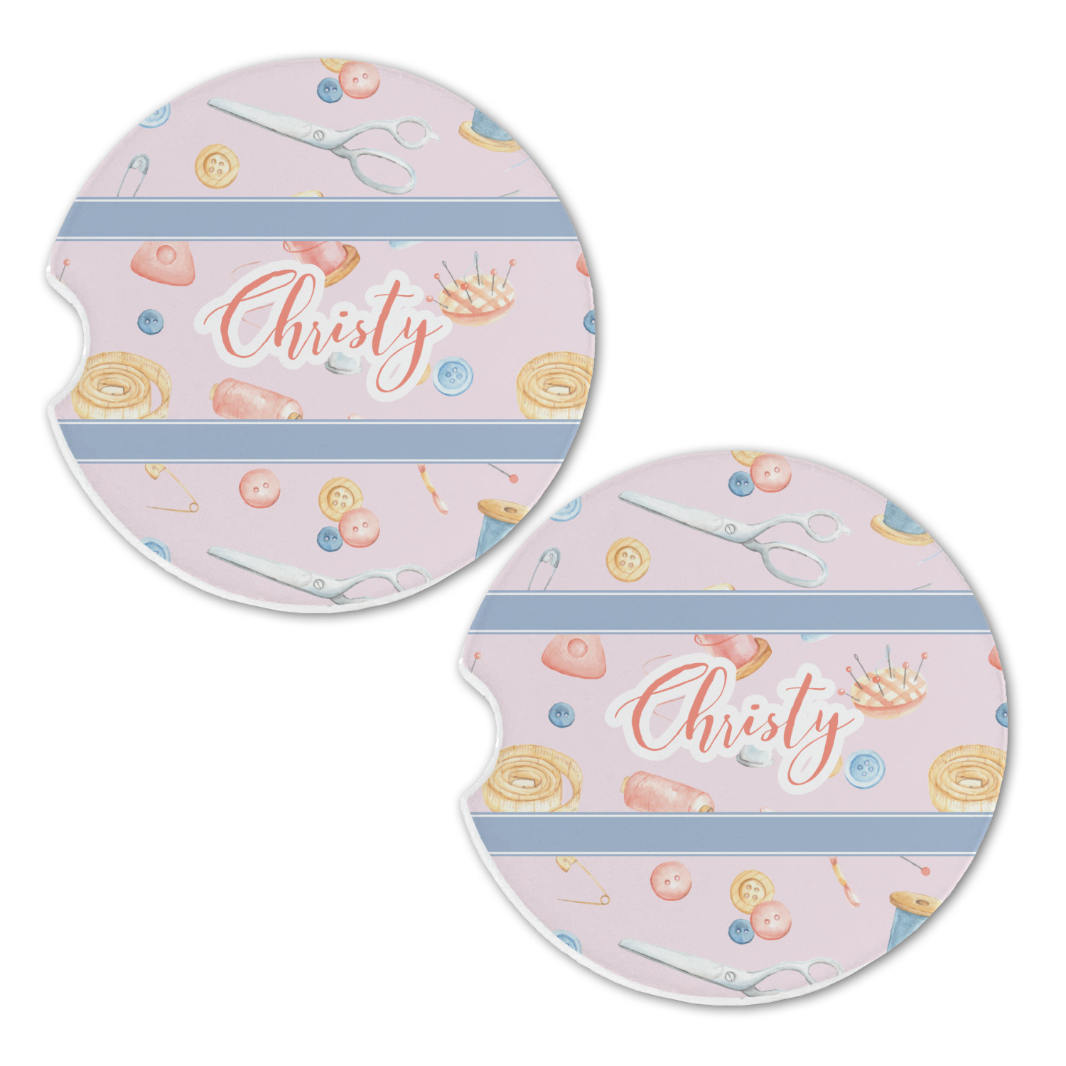 These sandstone coasters are round, robust, and feature a smoothed glossy side to exhibit your customized design. With a 2.5 inch diameter, these stone coasters will fit snugly inside most cup holders. This model also features a semi-circle shaped divot that allows for easy removal, despite the tight fit. You can purchase these car cup holder coasters in a pair, or singularly, depending on your needs.