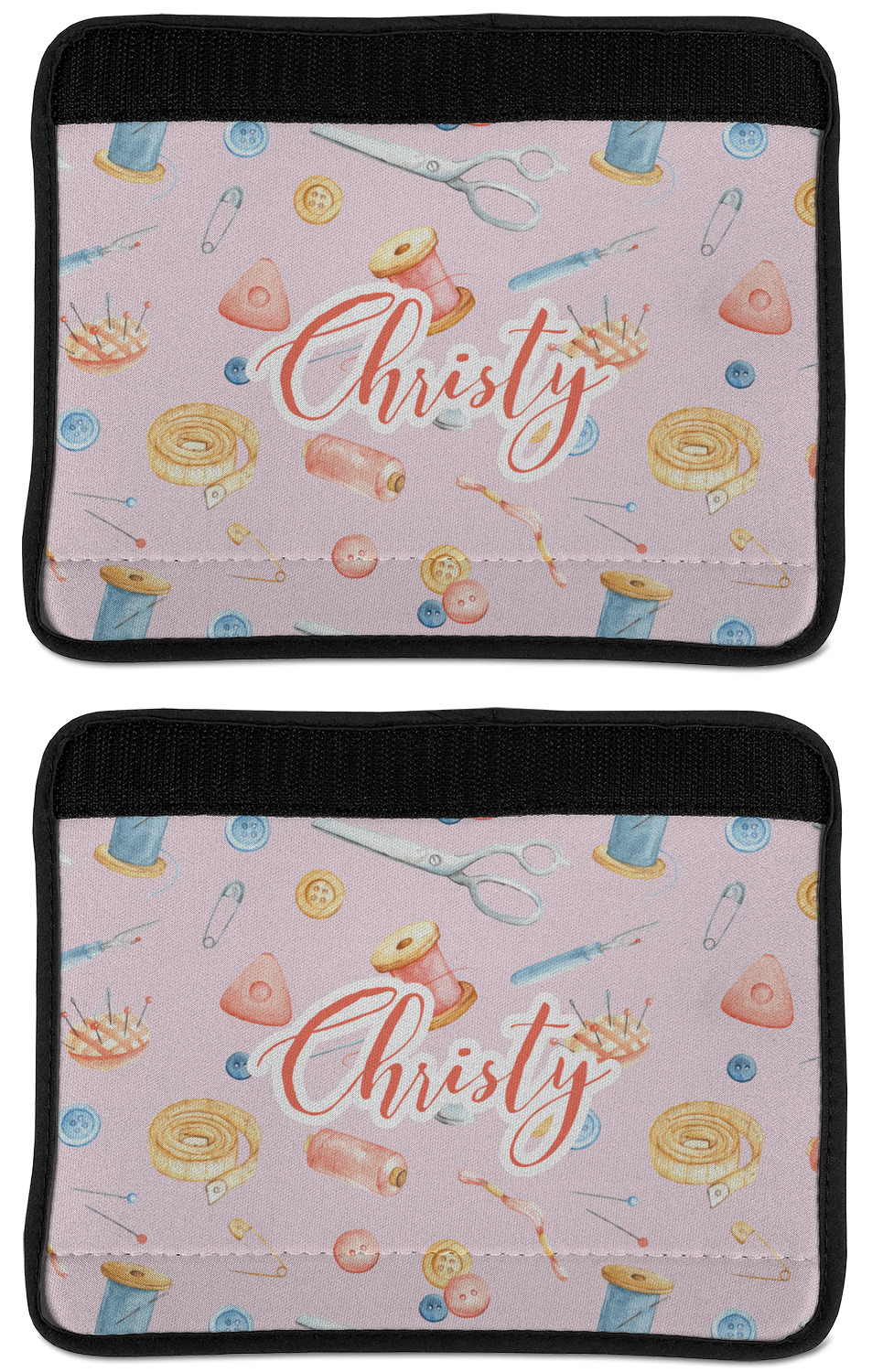 Made from neoprene, our seat belt strap covers wrap around the belt itself and have a Velcro tab for easy attachment and closure. The belt's edges are trimmed with a black polyester for a secure finish. Each cover is 9.5 by 7 inches when open and 9.5 by 2.5 inches when closed. We print your personalized design on the face of the seat belt pad.