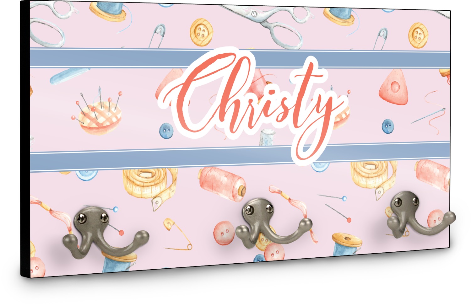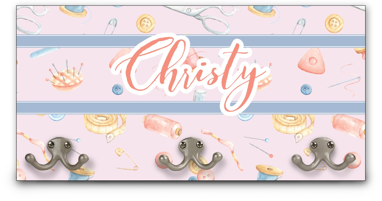 This coat rack is the perfect way to add some personality to your wall or entryway. The board is made of a strong maple that is approximately 16" x 8". The three 2-prong hooks are a sturdy metal that have three screws attaching them to the board. Your design is printed right onto the front of the board while the back and sides are a simple black.