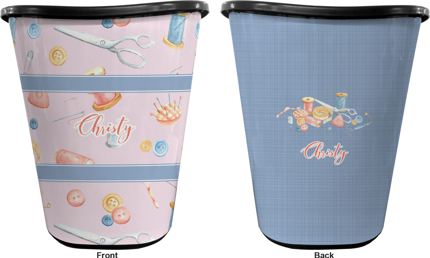You can choose to purchase these decorative wastebaskets in either a white or a black color that will show on the base and the upper rim. Your customization is printed on a high-gloss, fine-quality vinyl adhesive, and you can choose to either have this adhesive applied to one side only or to both sides. As such, this plastic wastebasket can be single-sided or double-sided, depending on your creative vision. Your customization is printed using durable inks, making the design waterproof and resistant to fading over time.