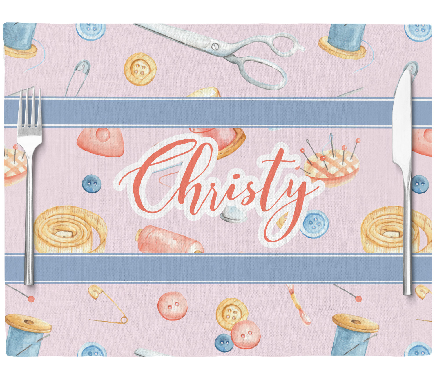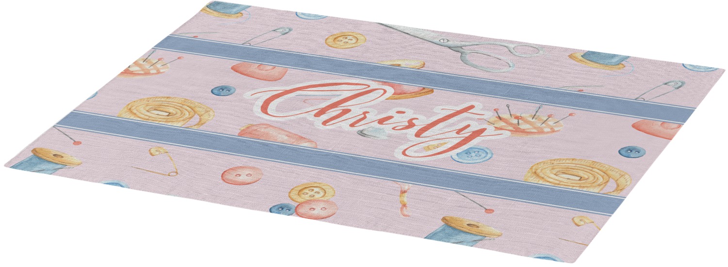 Each of our table mats are a poly twill material with woven burlap detailing. This creates a soft, quality placemat for us to fully print your personalized design across. The woven twill also adds a wrinkle-free surface to set your table! Each customizable placemat is a rectangle shape measuring at approximately 13 x 18 and printed here in the USA.