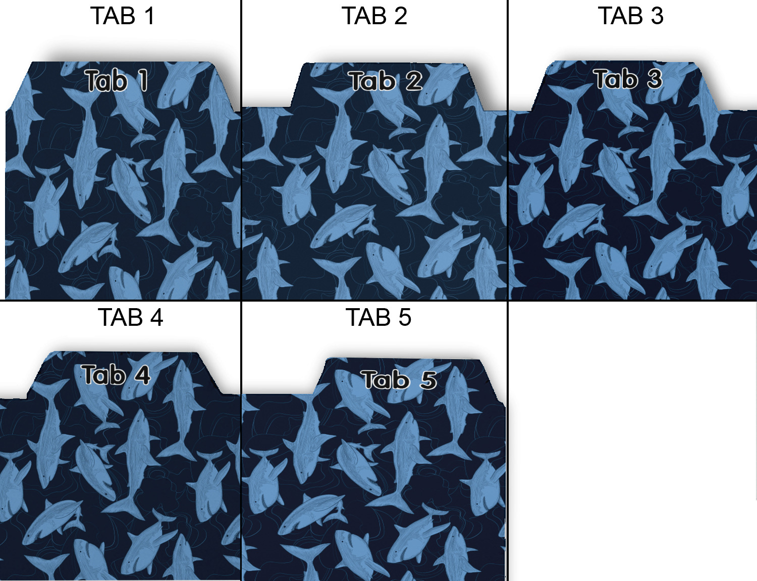 Whether you use binders at school or at work, we have designs to suit all of them. Available in 5 or 6 tab sets, you are sure to find a set to suit your needs. The back of each one is white and can be used to take notes, write vital information on, etc.