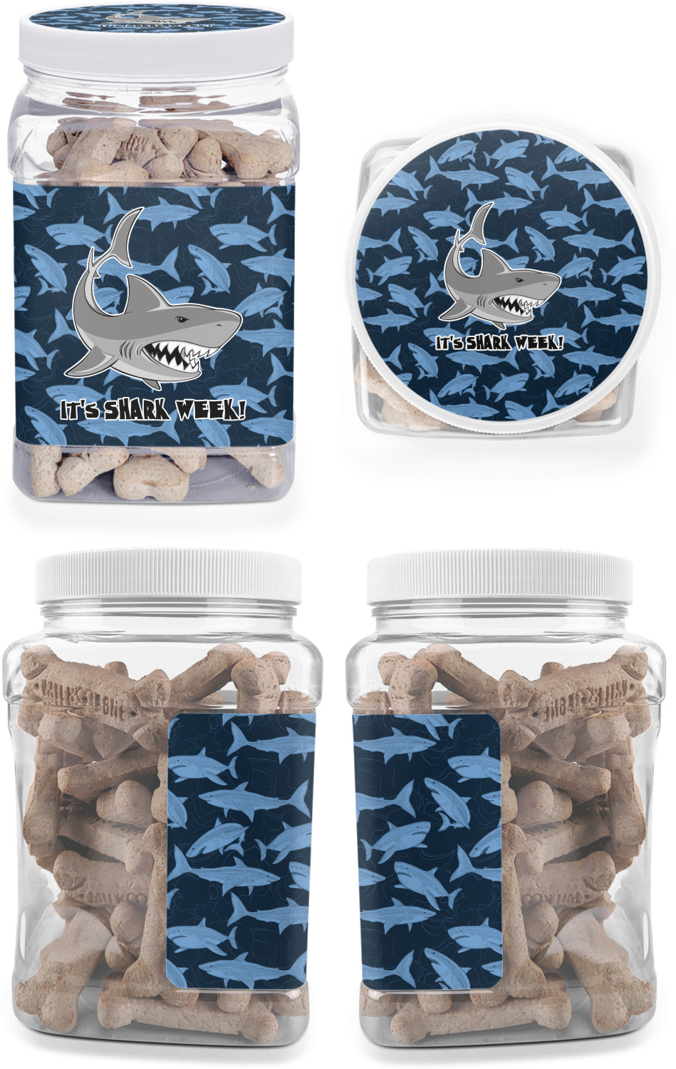 This half gallon jar, made from a sturdy plastic, is the perfect way to keep treats from any naughty pet paws, while still keeping them ready on hand for when your pup performs an impressive trick. This dog cookie jar features a screw-on, white lid that displays your personalized design on a vinyl sticker. We apply another customized sticker that wraps around the front and sides of the jar. Our dog treat jar also has indentations on the rear ends of the sides, which allows for convenient handling, and its square frame allows for easy storage.