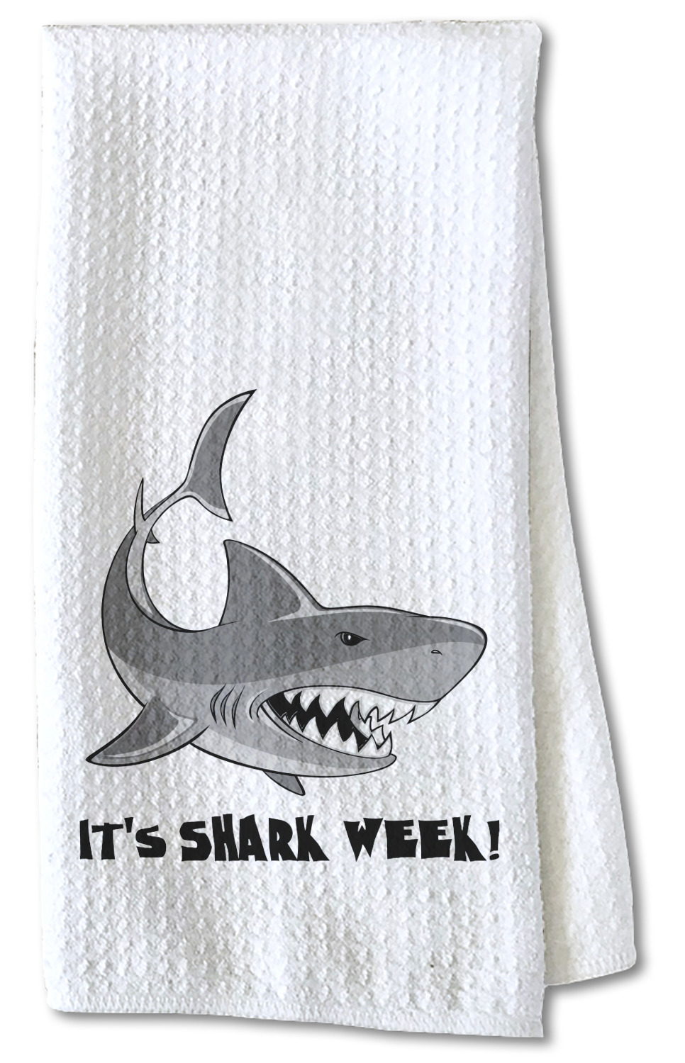 Each waffle weave kitchen towel is approximately 16 x 24 inches with your design printed on one side and the back is white.