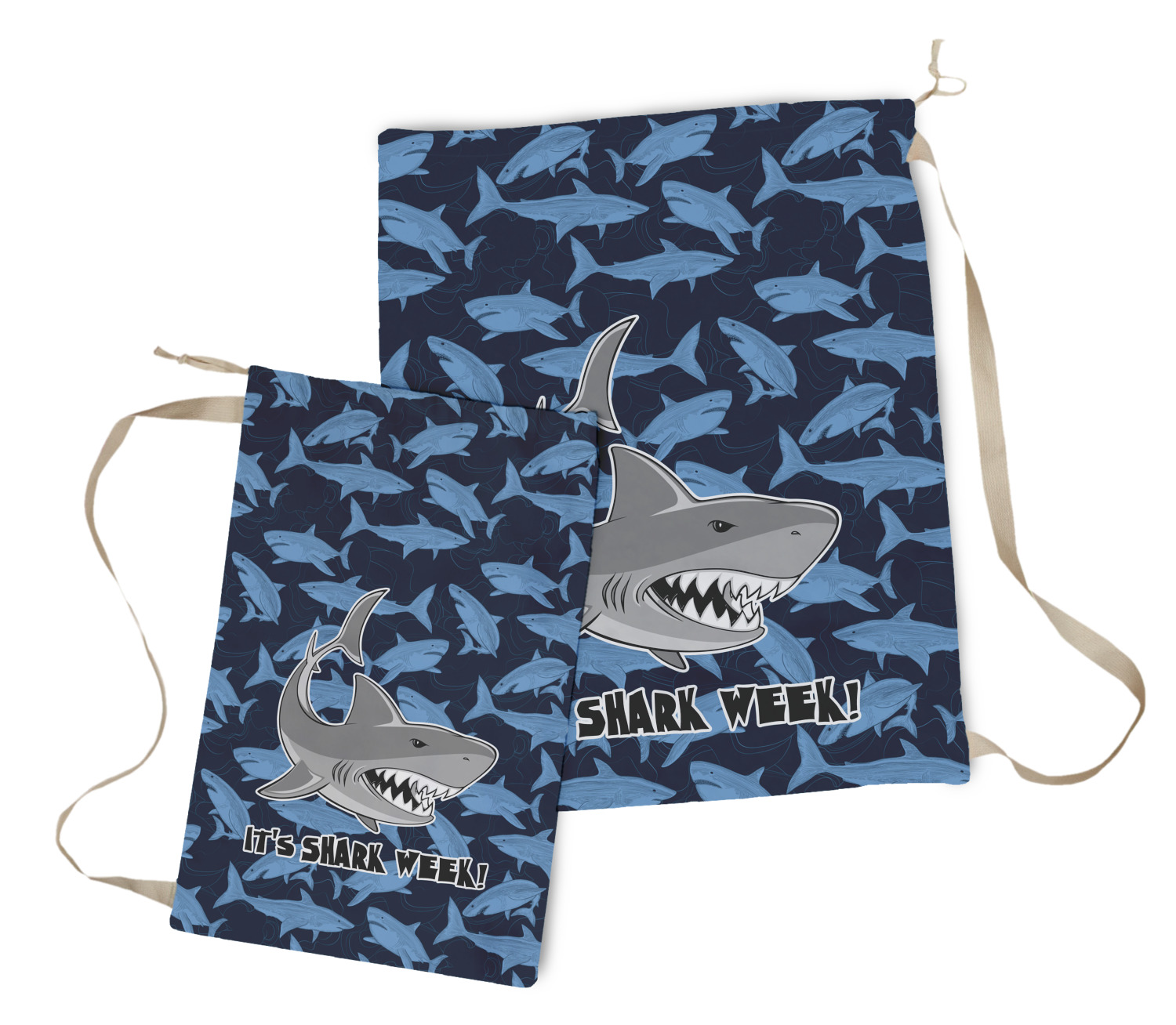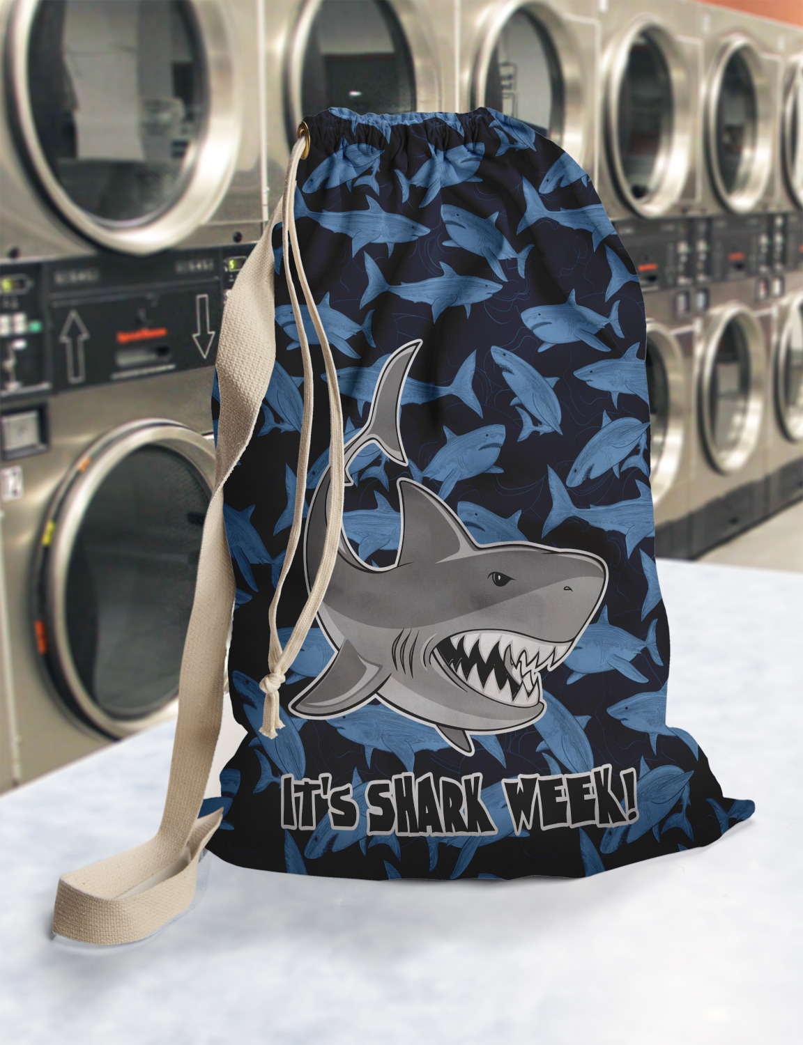 Carry your laundry in style with these customized laundry bags. Available in two sizes, featuring a natural colored woven strap and a cinch cord, these bags hold a lot of clothes or anything else you want to fit in them.