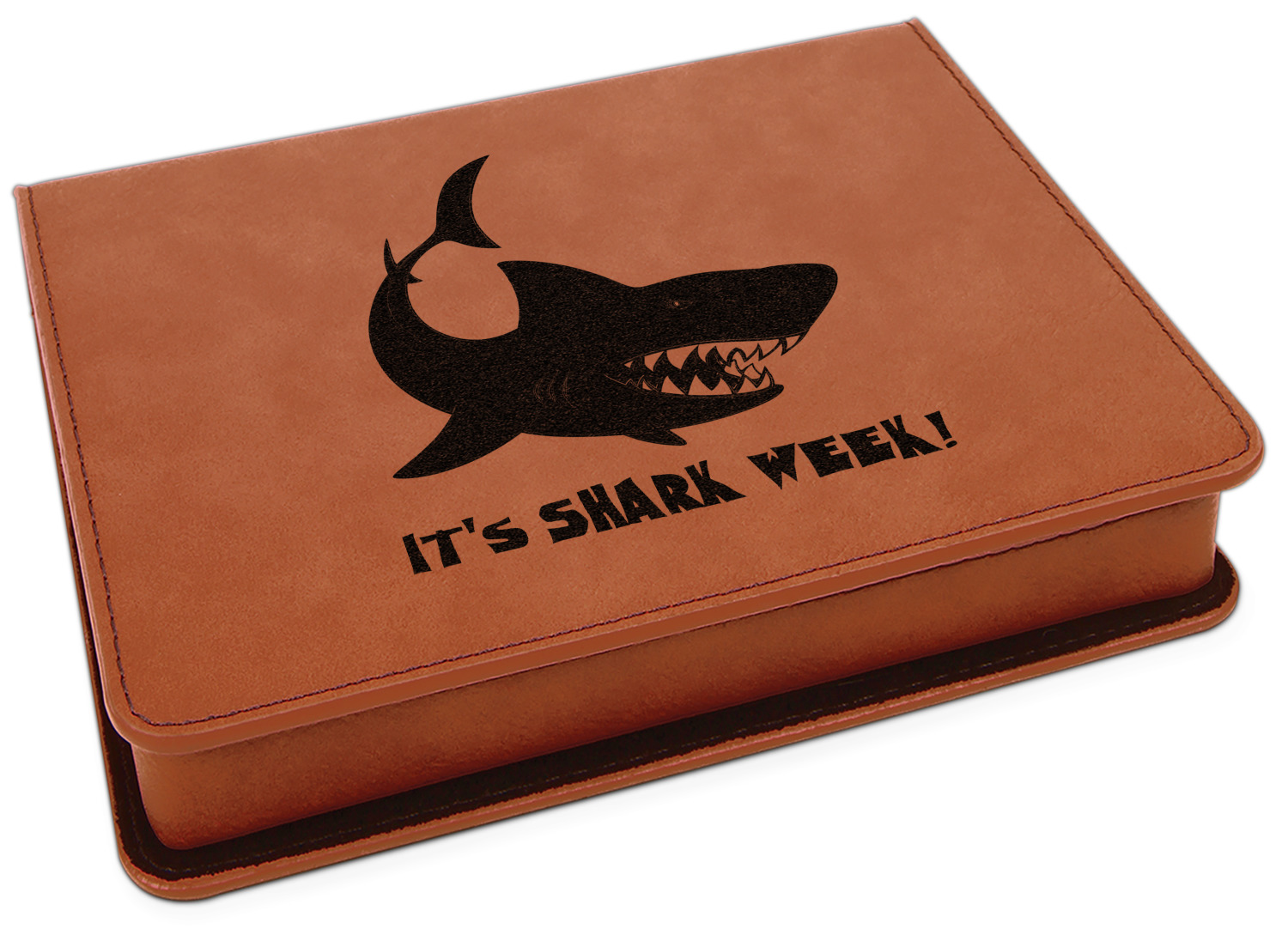 This set includes a wine stopper, pourer, drip ring, and a corkscrew! The exterior of the box is a gorgeous, cognac-brown leatherette, while the interior is covered in a black, velvety material. Four foam indentations, unique to the shape of the wine tool, are found at the bottom half of the box's interior. The tools fit snugly into each of their designated spots, and the foam material helps to protect the integrity of your tools. Each of the wine gadgets features a bamboo accent, with the location and style depending on the tool itself. We laser engrave your personalized design onto the lid of the box, which easily flips open and is secured closed by a small magnet. The wine accessories box measures at 7 by 5.5 inches in total.