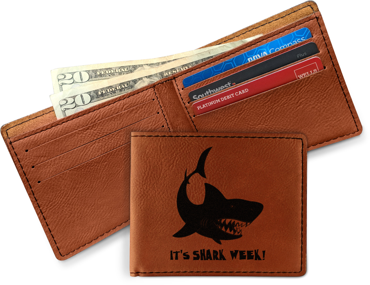 Your bifold wallet will be personalized by laser engraving, which will be a black color on the wallet. Choose a graphic, text, or monogram to personalize your wallet. There are thousands of choices in our design center.