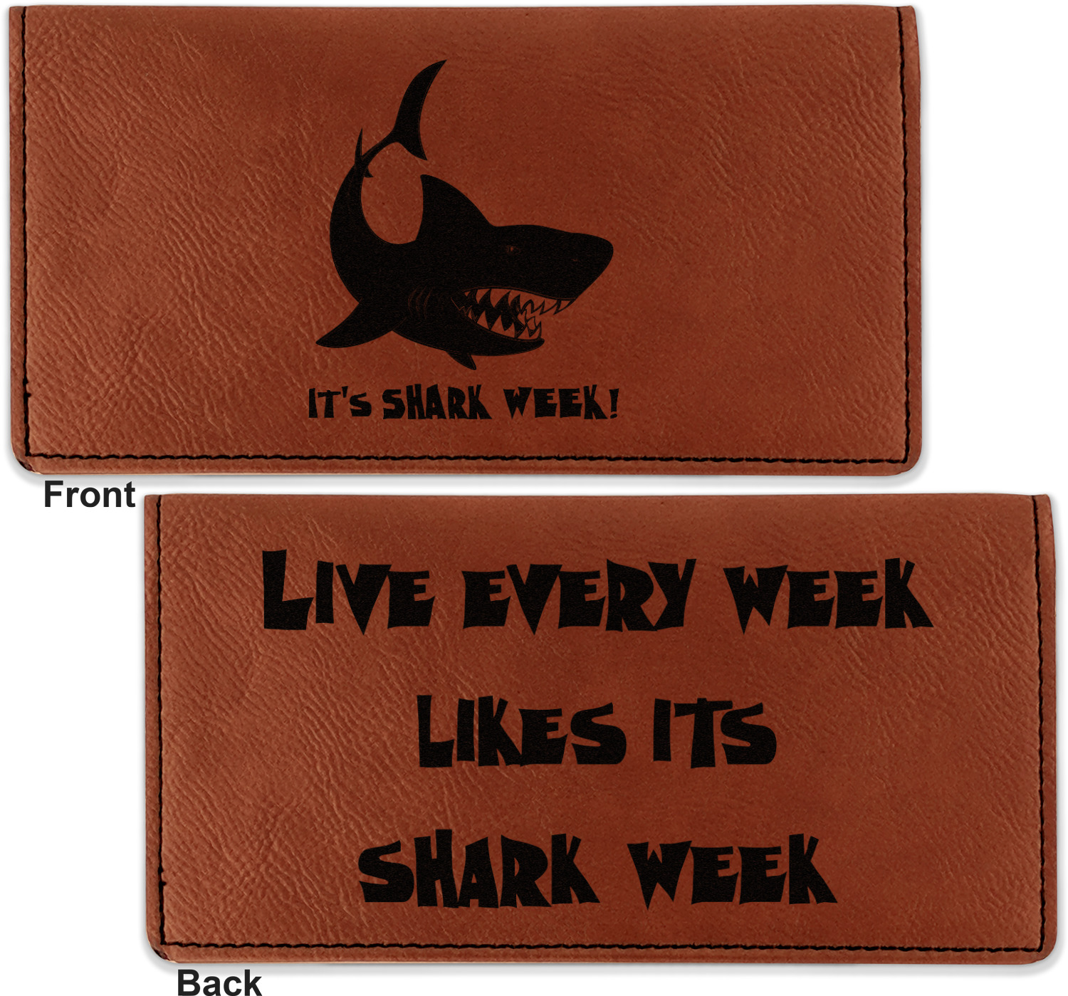 Go into our design center to start personalizing. Your checkbook cover will be laser engraved, making the graphic or text a black color. Choose a fun saying, monogram, or font to go on your checkbook cover. You have the opportunity to do it double or single sided.