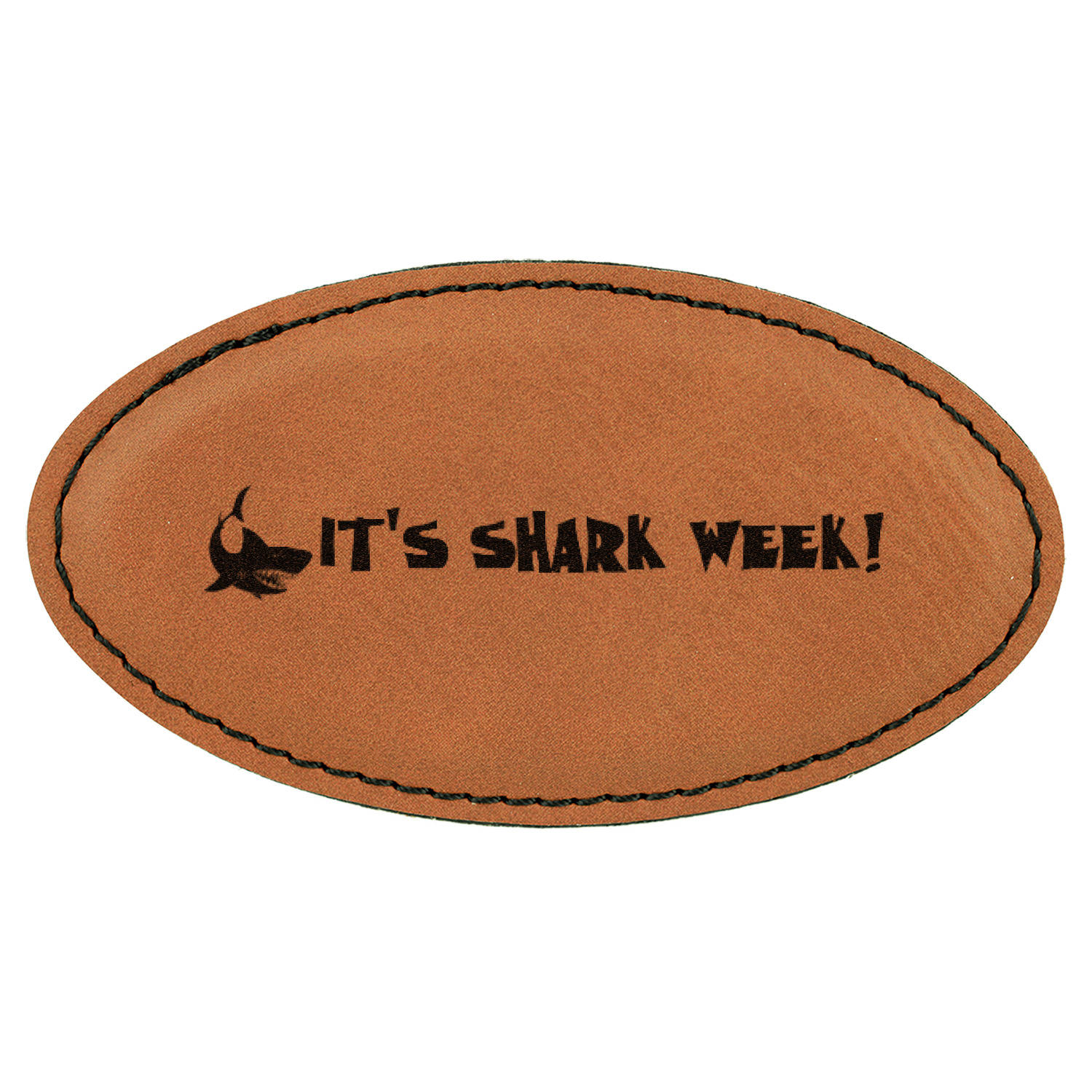 Made from a cognac-brown leatherette into an oval shape, these custom name badges measure at around 3.25" x 1.75". To add the suave appearance of this custom badge, a fine black stitching lines the edges or the badge itself. Your customized design is laser-engraved onto the surface of the leatherette. Accompanying your purchase is a removable magnet strip that can be used to secure the engraved name tag to any shirt, dress, or jacket.