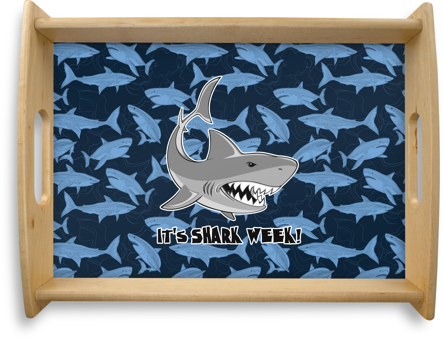 This serving tray with handles features square edges and two rounded sides, creating a very modern look. Each side is fabricated from a beautifully cut, natural wood. The bottom of the interior of the tray displays your customized design in bright, vibrant color. The tray is sold in both a black color and a natural wood look. Each variation of the wood serving tray has two sizes: Small, which is 14" x 10" x 2.25", and Large, which is 19.5" x 13.5" x 2.75".