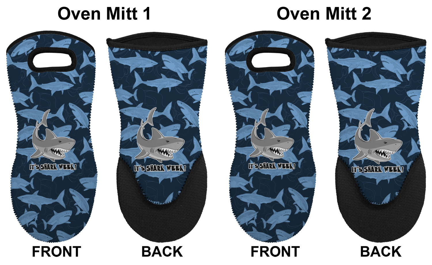 These heat resistant gloves are made entirely of a durable neoprene; the front features a softer texture, while the palm's side has a textured surface, meant to handle heat up to 500 degrees Fahrenheit. Thick, heavy duty stitching connects the two sides. A small, oval cutout appears on the front, and can be used to hang and store the mitt. Your personalization appears on the front, and the upper part of the back of the mitt. The style of these oven mitts are suitable for both the right and left hand, depending on your needs. If you need one for each hand, be sure to order two!