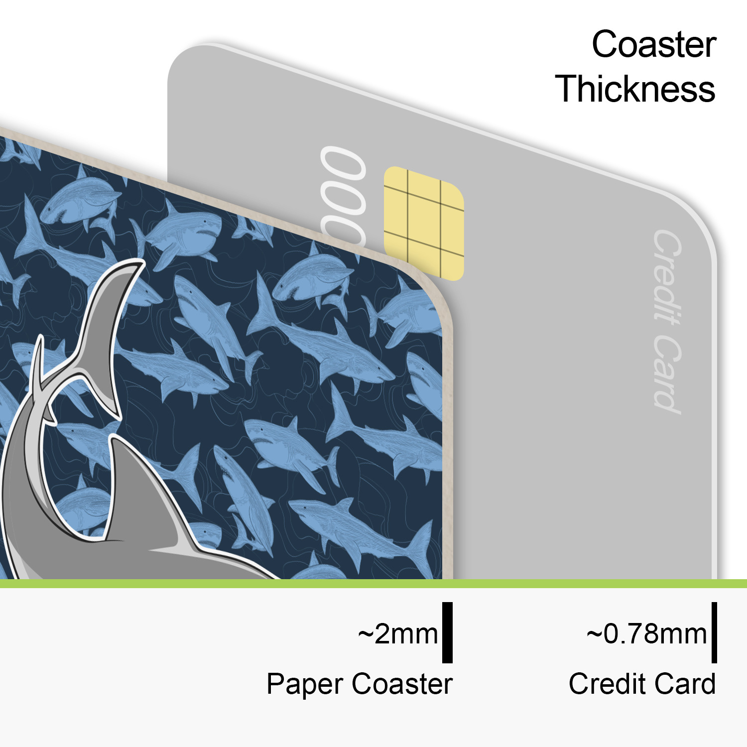 These coasters are perfectly sized for just about any drink being a 4"in square. The paper construction is a thick heavyweight 80 point pulpboard perfect for absorbing the condensation on the outside of your glass.