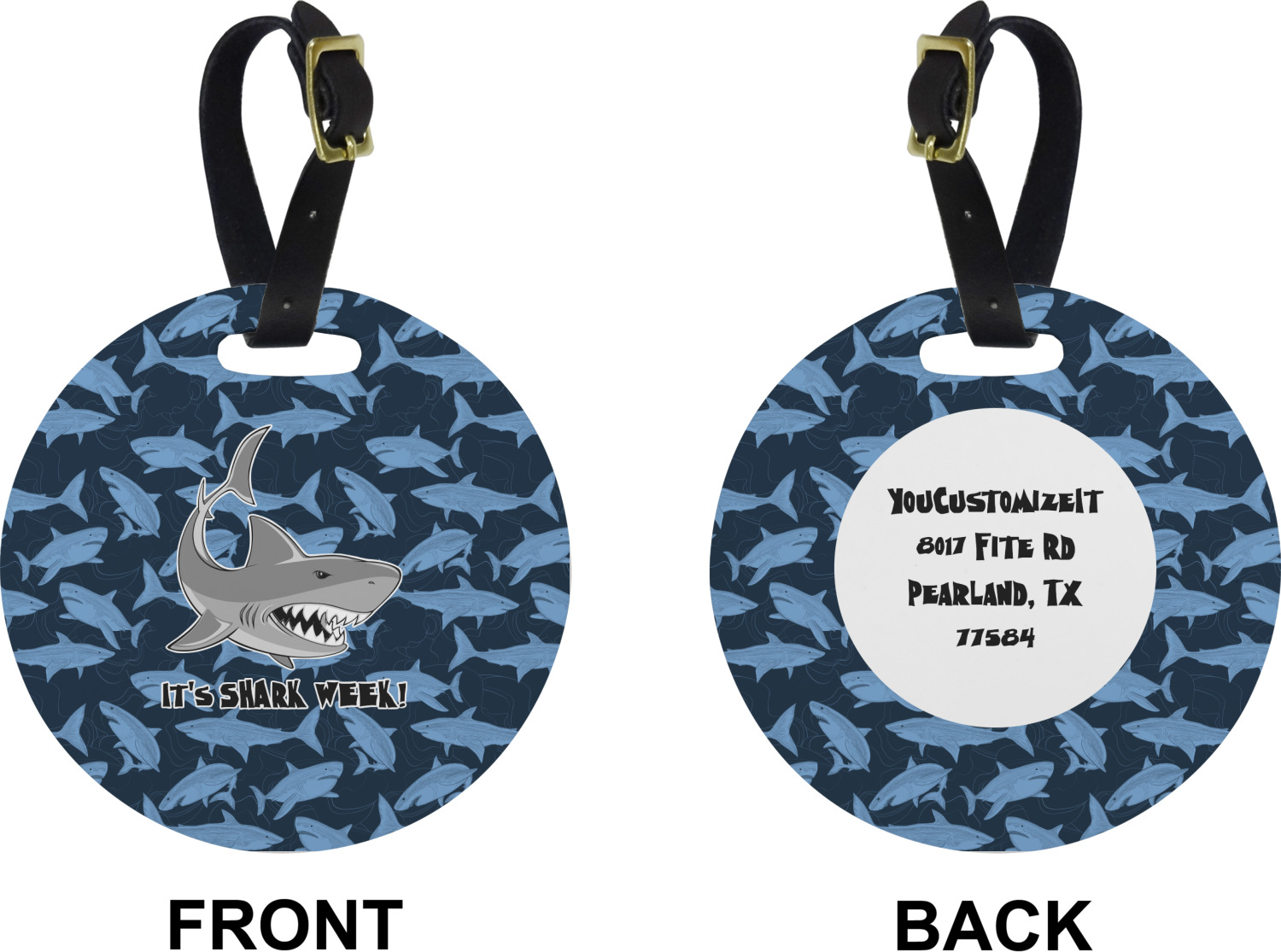 These personalized bag tags are sold in a variety of shapes, so that you may find the product that meets your vision exactly. We sell a round luggage tag, which measures at approximately 4" x 4". Our square luggage tag is about 3.5" x 3.5", while our rectangular version is 2.75" x 4 ".