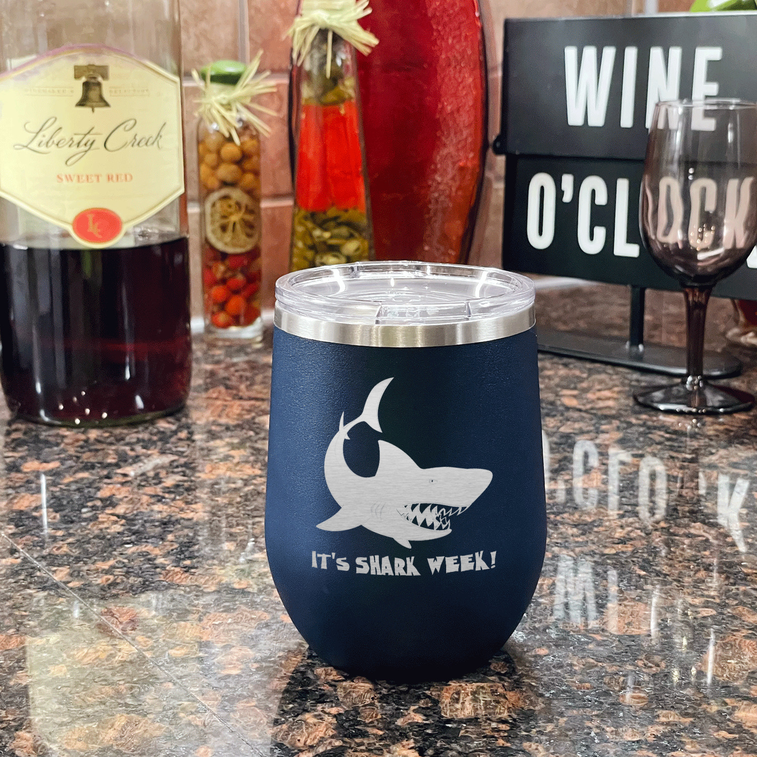 Design your wine tumbler with a cool graphic or quote. Even put your initials or monogram! These cups are laser engraved, which looks extra sharp on the metal tumbler.