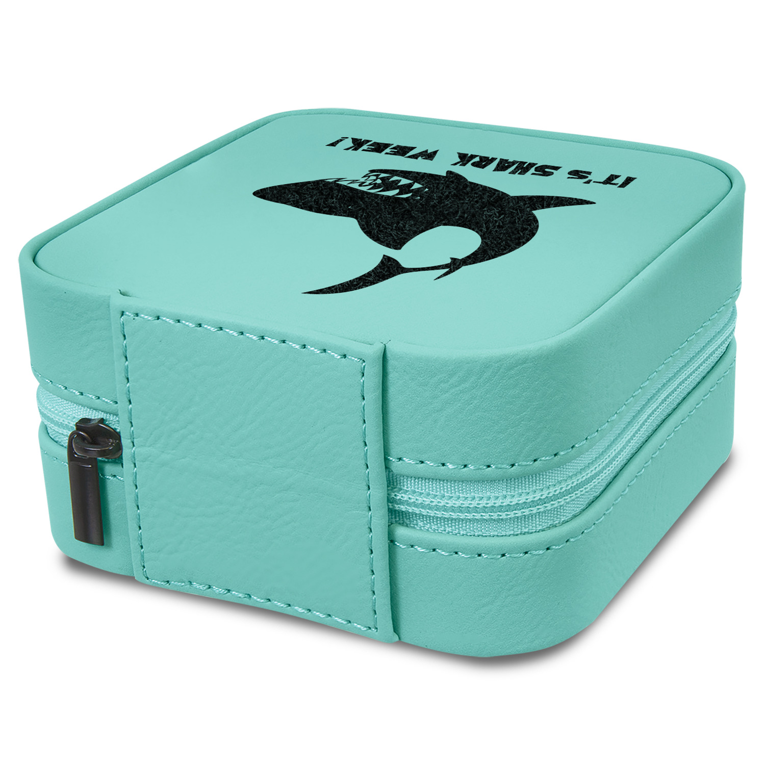 This square zippered travel jewelry box is made from leatherette and is available in four colors - classic cognac / rawhide, a beautiful teal. navy blue or pink. The tan colored soft velvet inside has compartments and hooks for all your jewelry - rings, chains, earrings, bangles etc.
