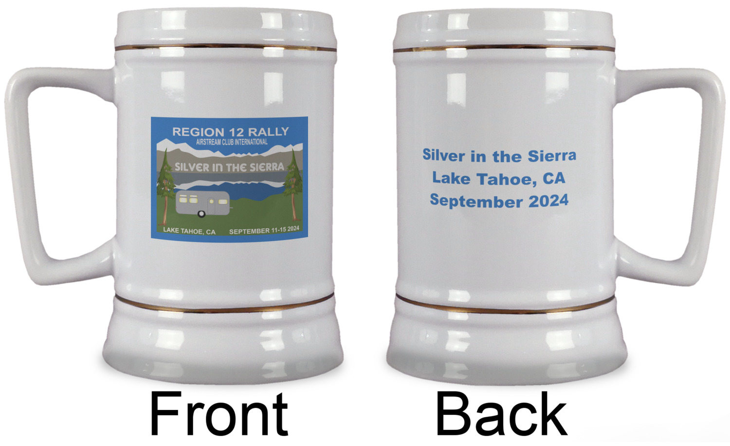 The beer steins are white in color, made from the highest quality ceramic and are approx. 5.5" tall with a top diameter of 3.5" and a bottom diameter of 4". They also have a D shaped handle that gives a modern touch to the classic European shaped beer stein. The beer steins also feature elegant gold pin stripes on the top and the bottom.