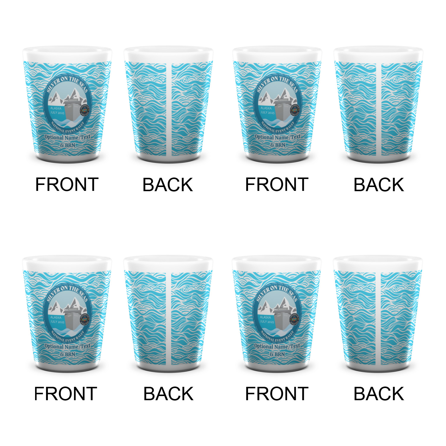 Made from ceramic these shot glasses are printed in full color with the design of your choice. These are a standard 1.5oz size and stand 2.25" tall. Available in a full white ceramic or a two-tone with a black color inside the shot glass. Buy a single or a set of 4, all of which can be designed separately to get you just what you want and need.