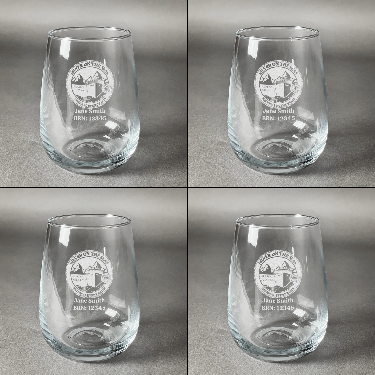 You can have all four glasses engraved with the same design or you can customize and personalize each glass individually - the choice is yours!!