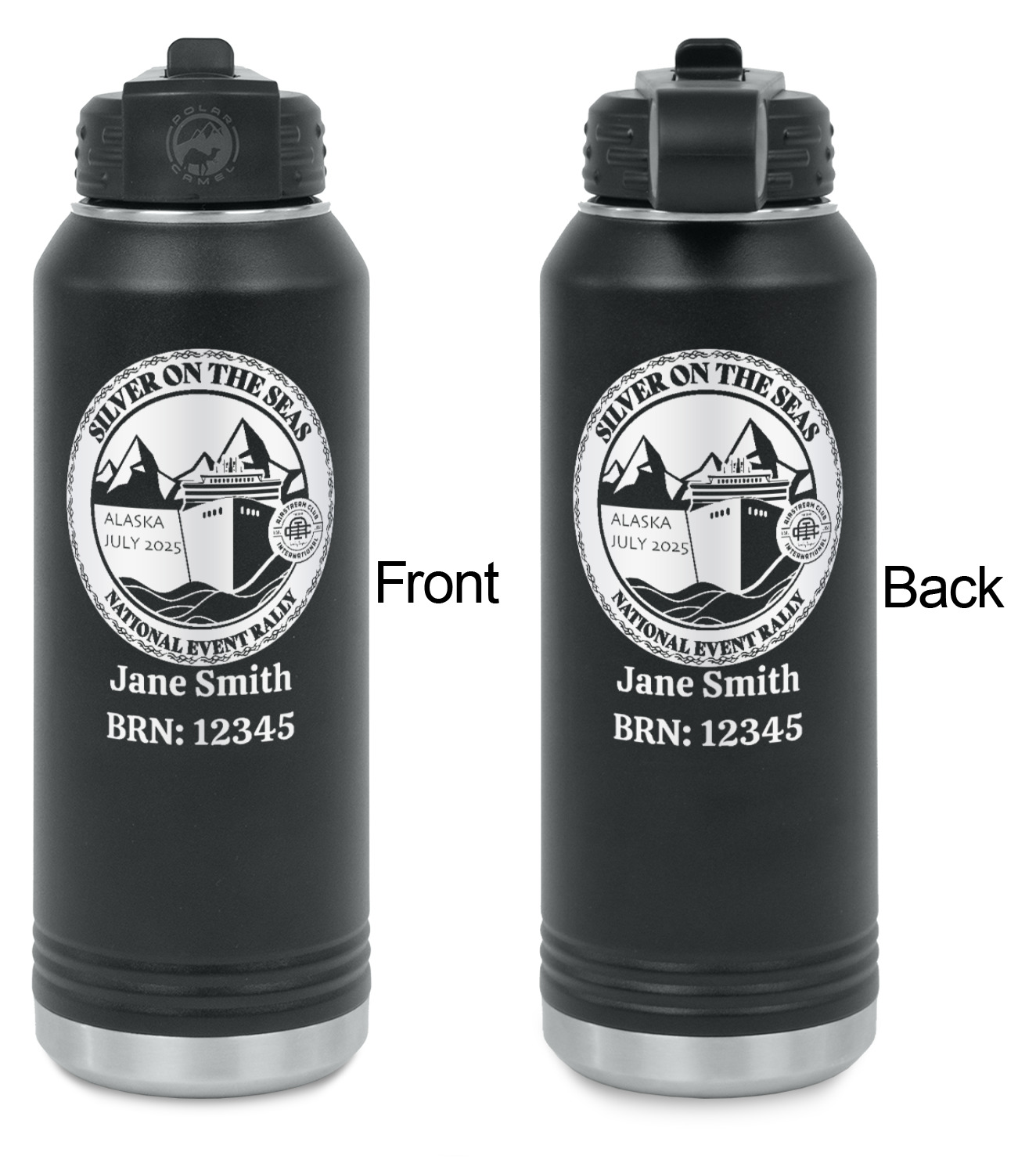 These 32 oz. water bottles are constructed from 18/8 durable food grade stainless steel. The inside of the water bottle is silver; while the outside is powder coated black