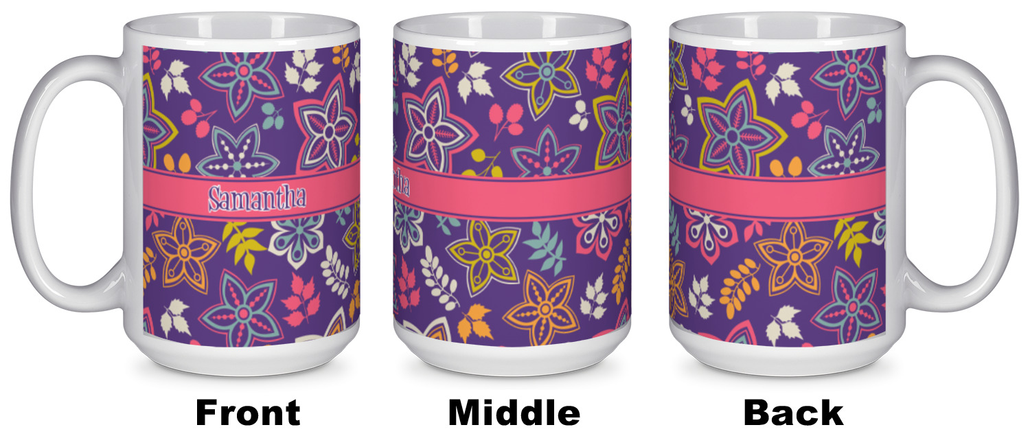 Our ceramic mugs have your design or photo printed along the surface with a gloss finish. The ceramic material of our mugs is dishwasher and microwave safe so you can reheat your tea or coffee if needed! We offer two different base colors with multiple mug sizes. The white ceramic mugs come in three size options - 11 oz., 15 oz., and 20 oz. Our black ceramic mugs are sold in either 11 oz. or 15 oz. sizes.