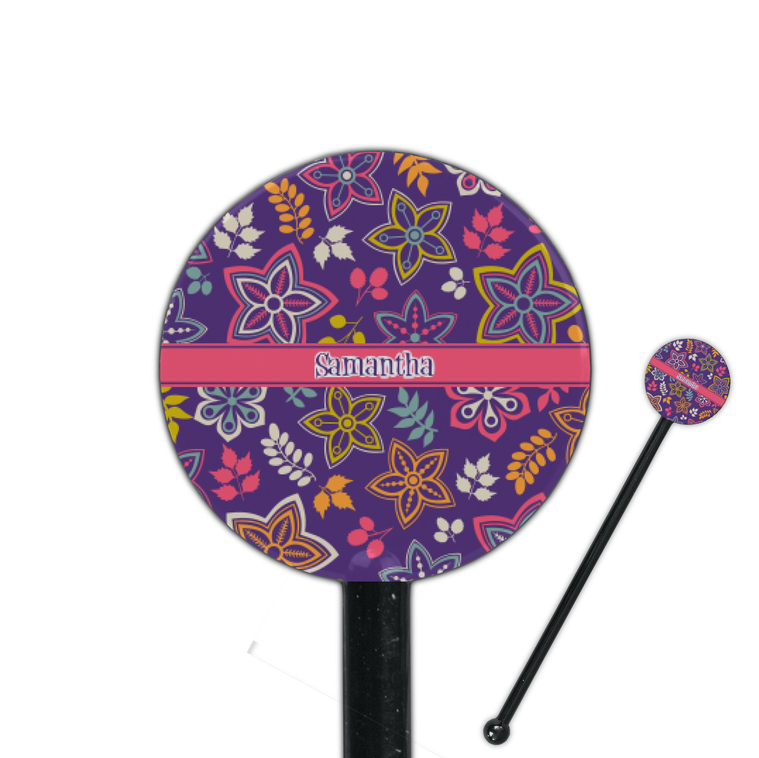 The flowers in this design are are a vibrant mix of fall colors, all on a deep plum background. The design has a classic ribbon in hot pink, the perfect place to add a name for that personal touch to pull the entire design together.