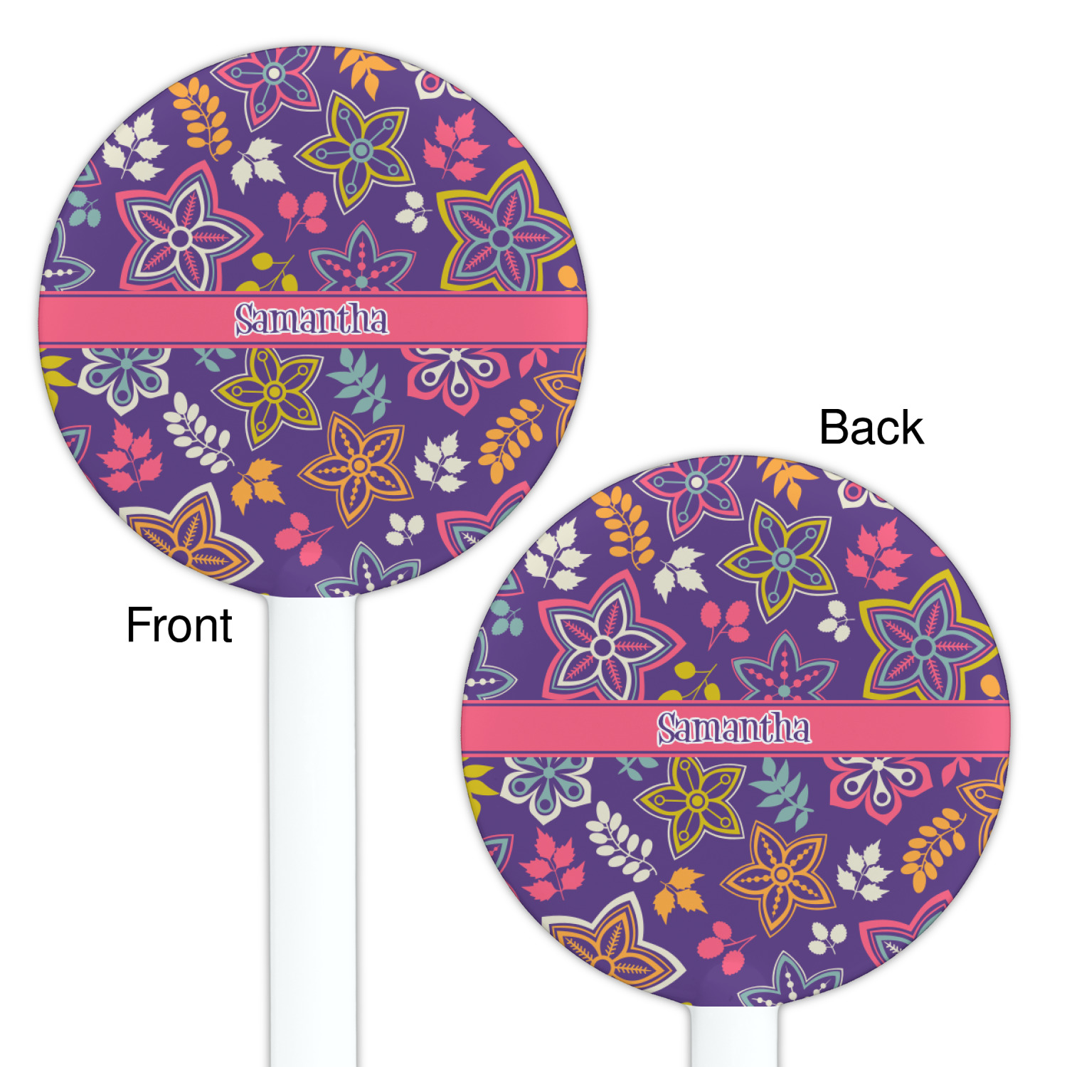 The flowers in this design are are a vibrant mix of fall colors, all on a deep plum background. The design has a classic ribbon in hot pink, the perfect place to add a name for that personal touch to pull the entire design together.