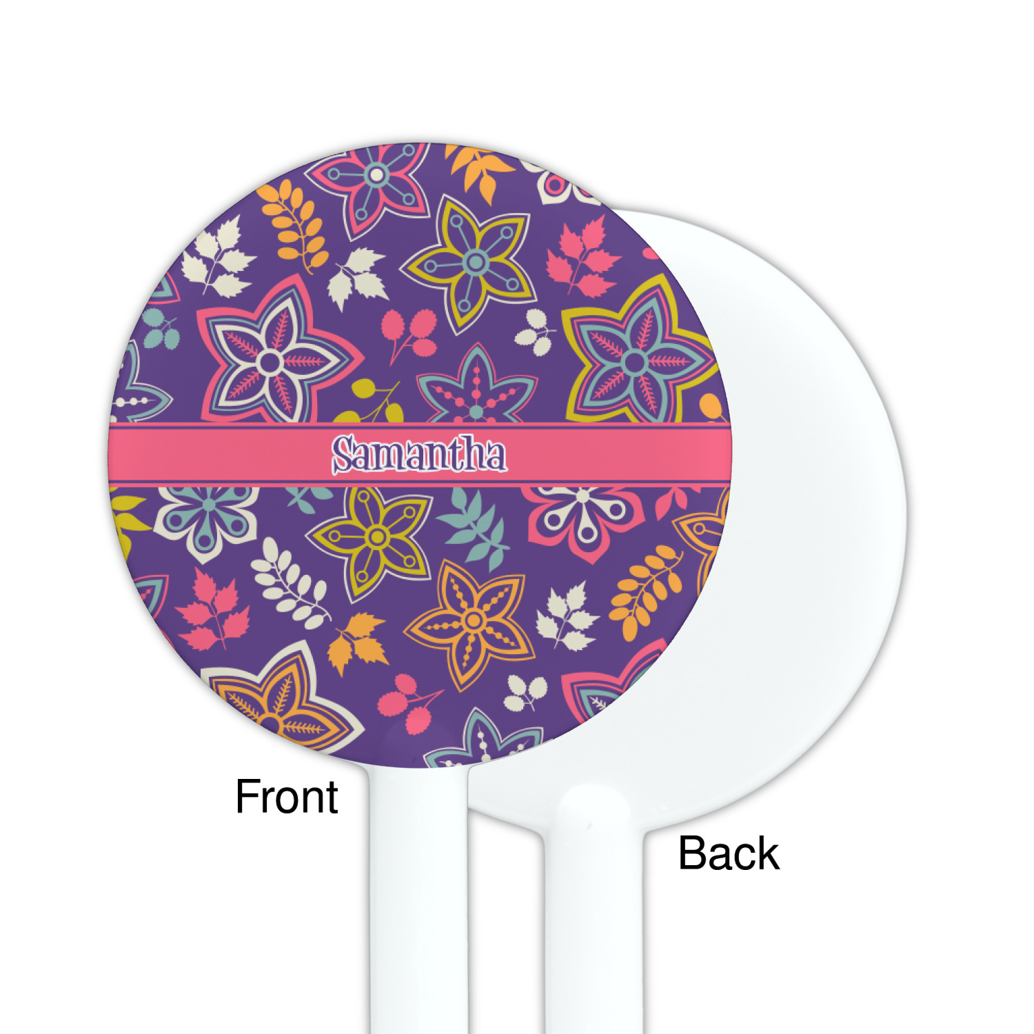 The flowers in this design are are a vibrant mix of fall colors, all on a deep plum background. The design has a classic ribbon in hot pink, the perfect place to add a name for that personal touch to pull the entire design together.