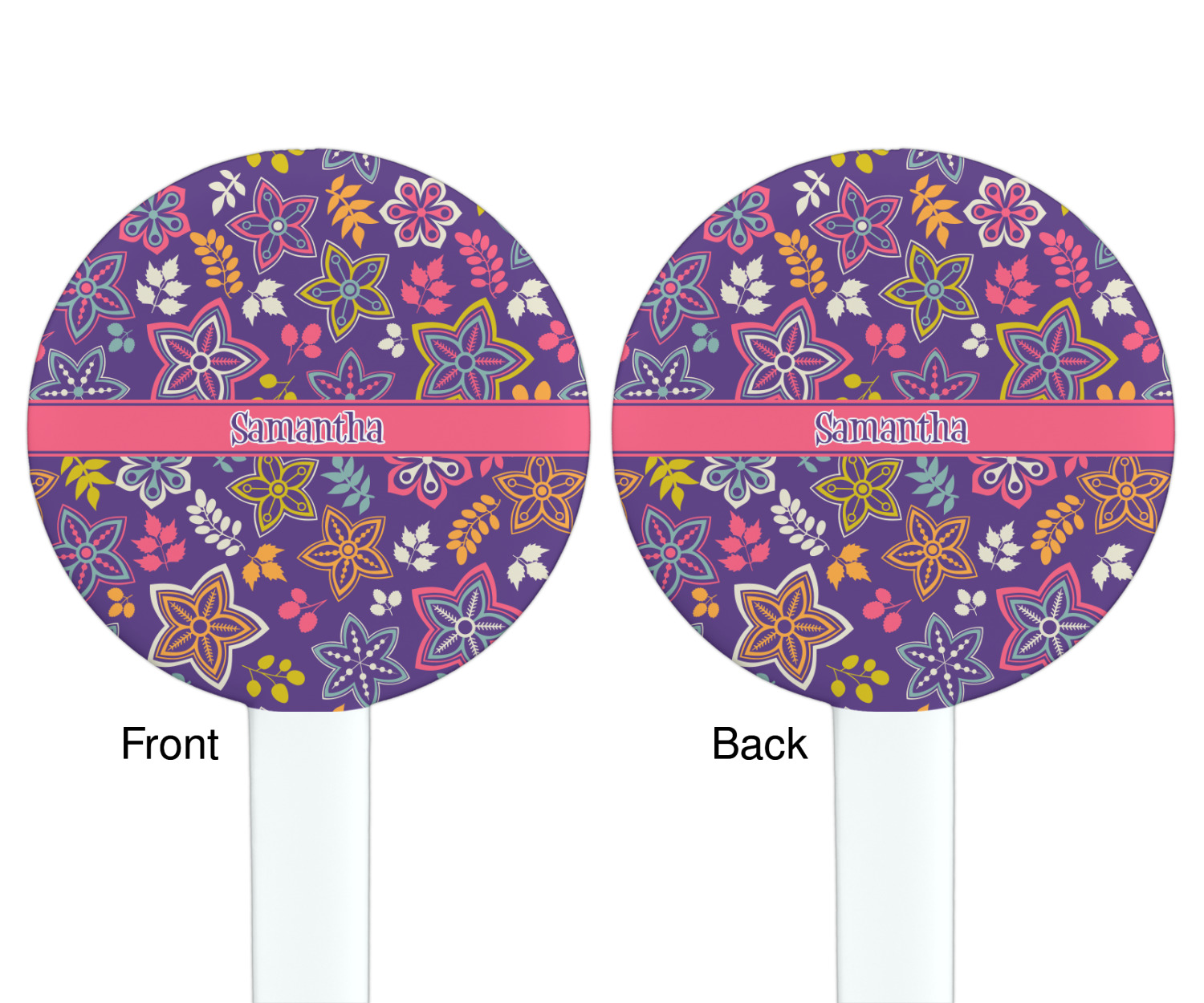 The flowers in this design are are a vibrant mix of fall colors, all on a deep plum background. The design has a classic ribbon in hot pink, the perfect place to add a name for that personal touch to pull the entire design together.
